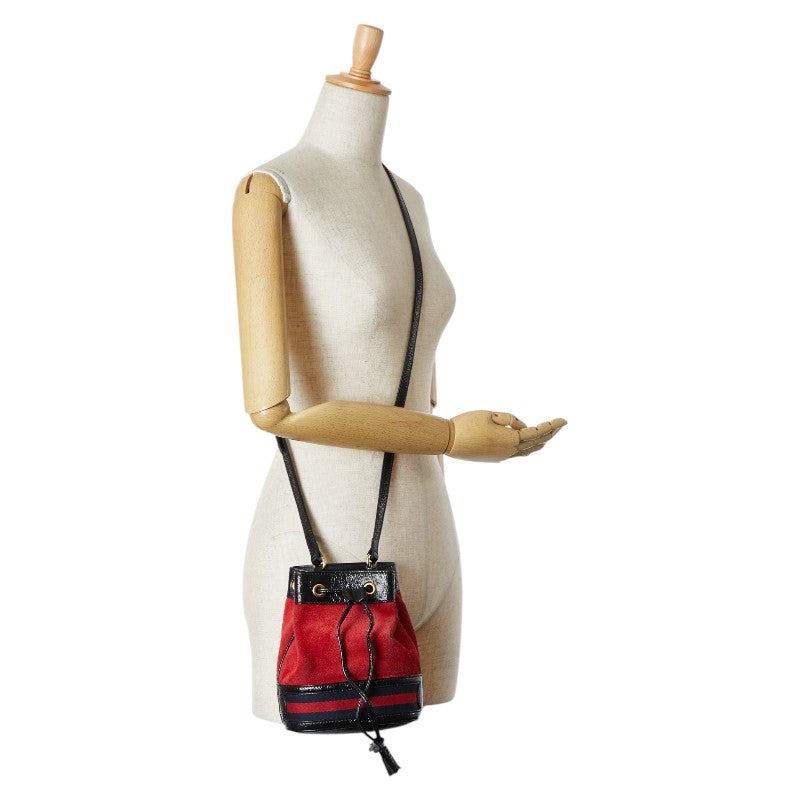 グッチ 巾着型 斜め掛け ショルダーバッグ 550620 レッド ブラック レザー スエード レディース GUCCI 【中古】