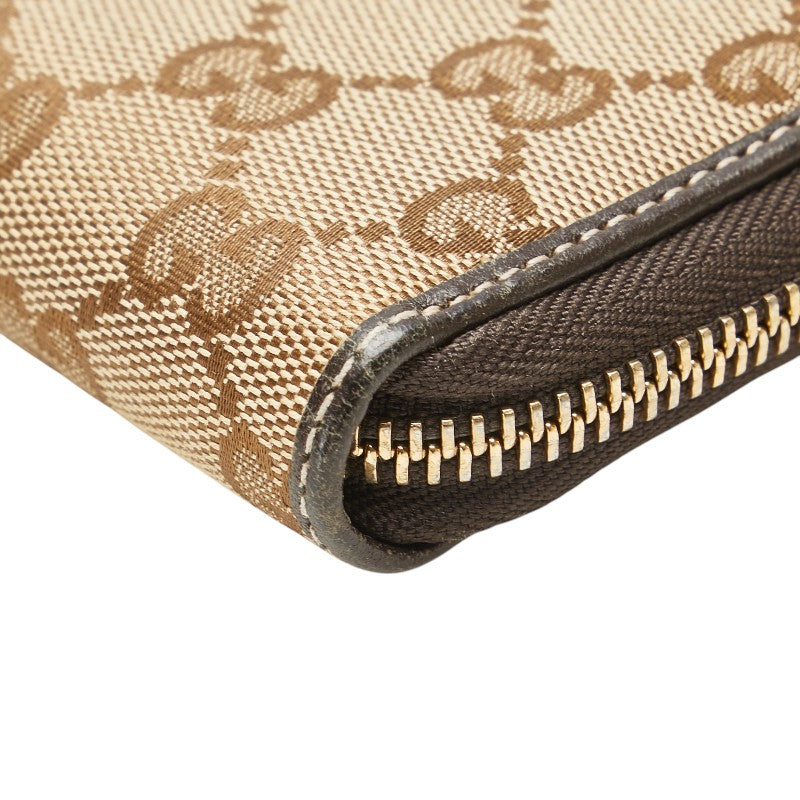グッチ GGキャンバス ラブリー ラウンドファスナー 長財布 ベージュ ブラウン キャンバス レザー レディース GUCCI 【中古】