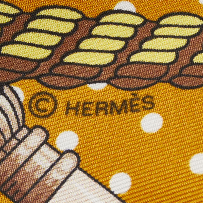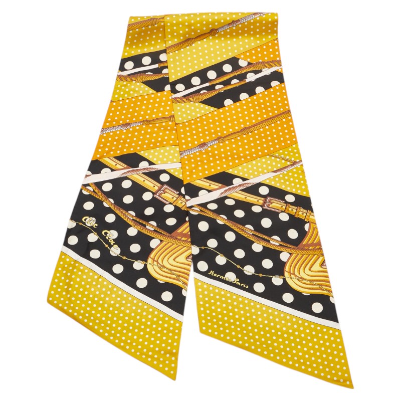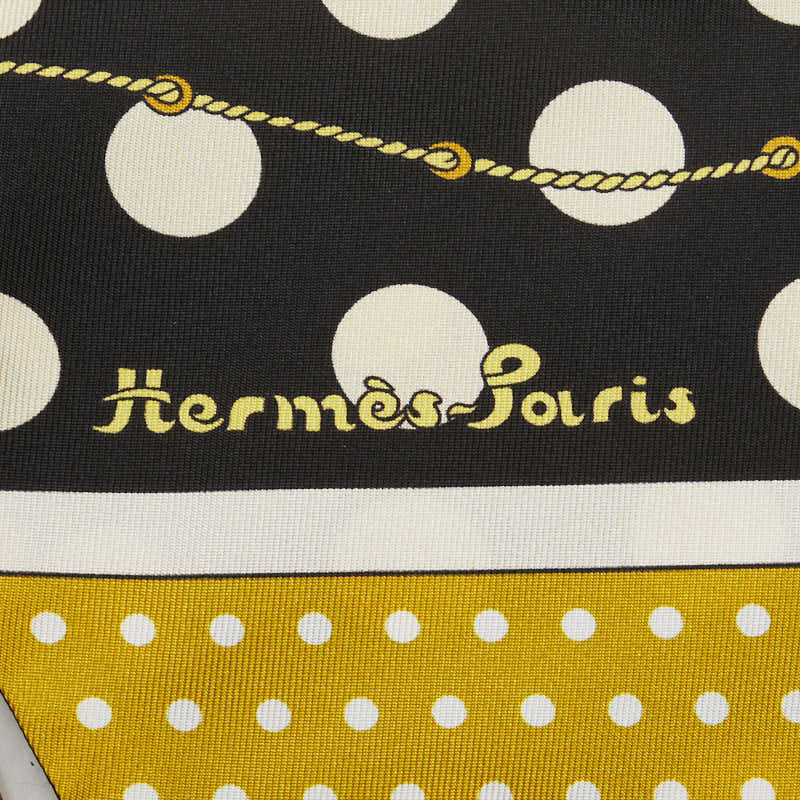 エルメス マキシツイリー Clic Clac a Pois クリック クラック ドット スカーフ イエロー ブラック シルク レディース HERMES 【中古】
