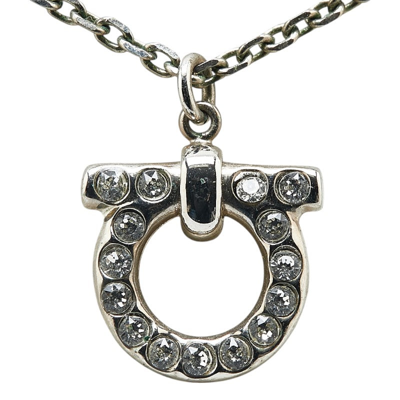 サルヴァトーレフェラガモ ガンチーニ ラインストーン ネックレス シルバー メタル レディース Salvatore Ferragamo 【中古】
