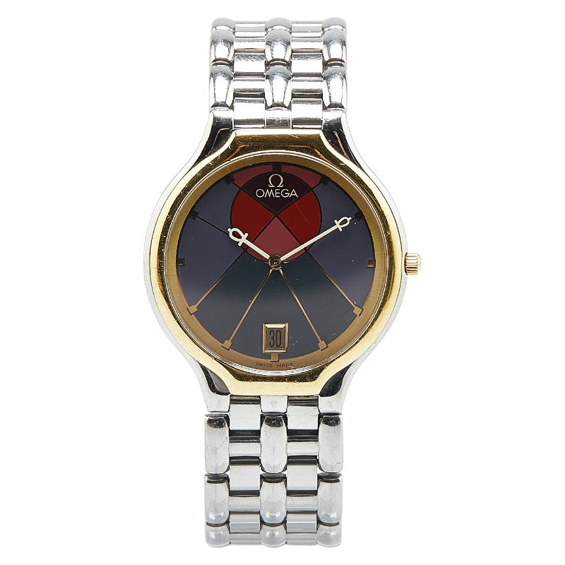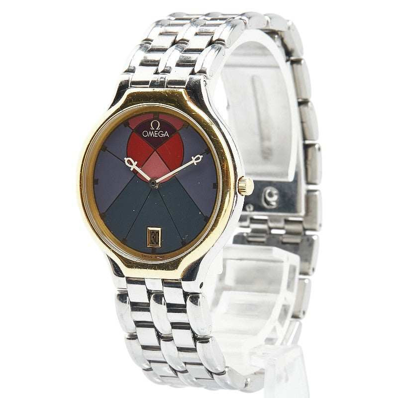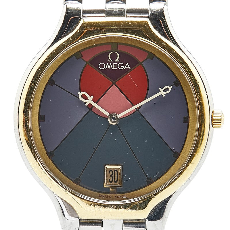オメガ デビル 腕時計 196.0316 クオーツ パープル文字盤 ステンレススチール K18YG イエローゴールド レディース OMEGA 【中古】