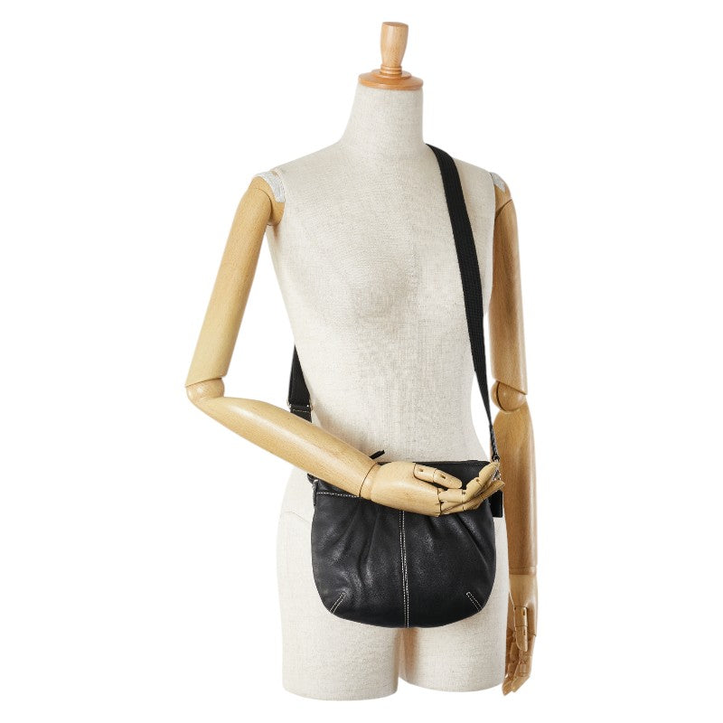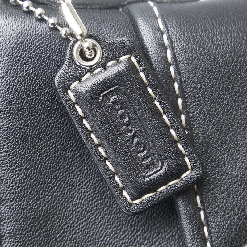 コーチ ステッチ 斜め掛け ショルダーバッグ ブラック レザー レディース COACH 【中古】
