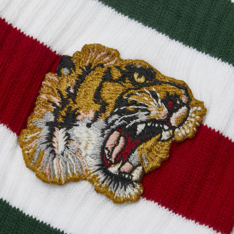 グッチ タイガー エンブロイダリー シェリーライン 靴下 ソックス ホワイト マルチカラー コットン レディース GUCCI 【中古】