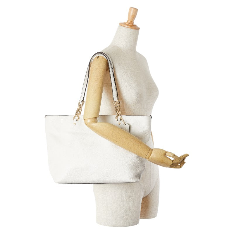 コーチ チェーン ハンドバッグ トートバッグ 36600 ホワイト レザー レディース COACH 【中古】