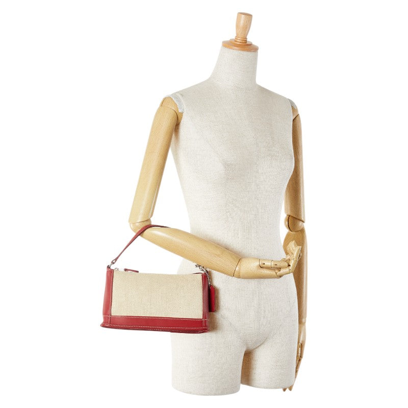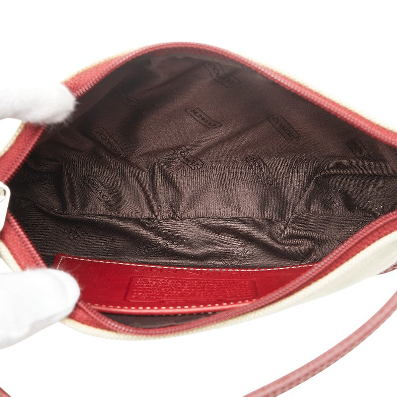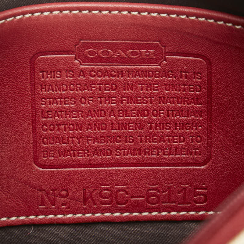 コーチ ハンドバッグ ベージュ レッド キャンバス レザー レディース COACH 【中古】