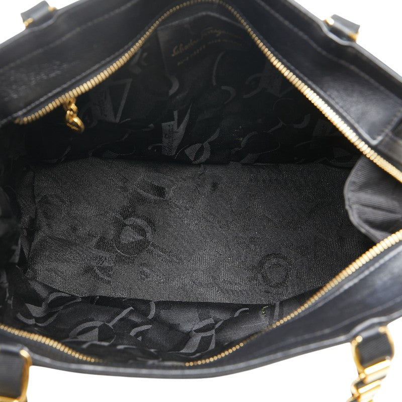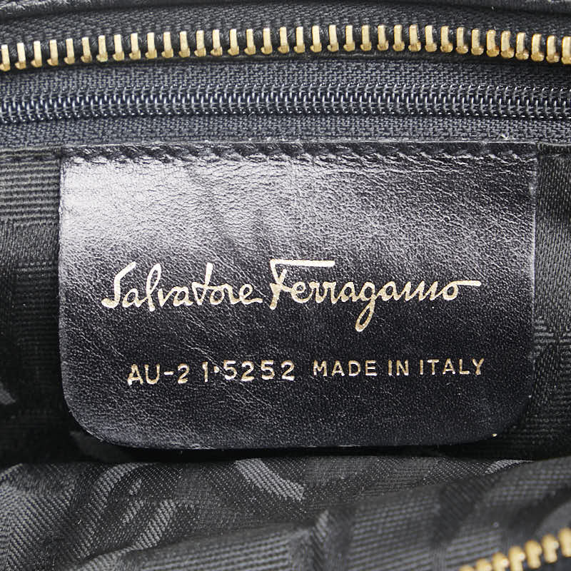 サルヴァトーレフェラガモ ヴァラ チェーン ショルダーバッグ AU-21 5252 ブラック キャンバス レザー レディース Salvatore Ferragamo 【中古】