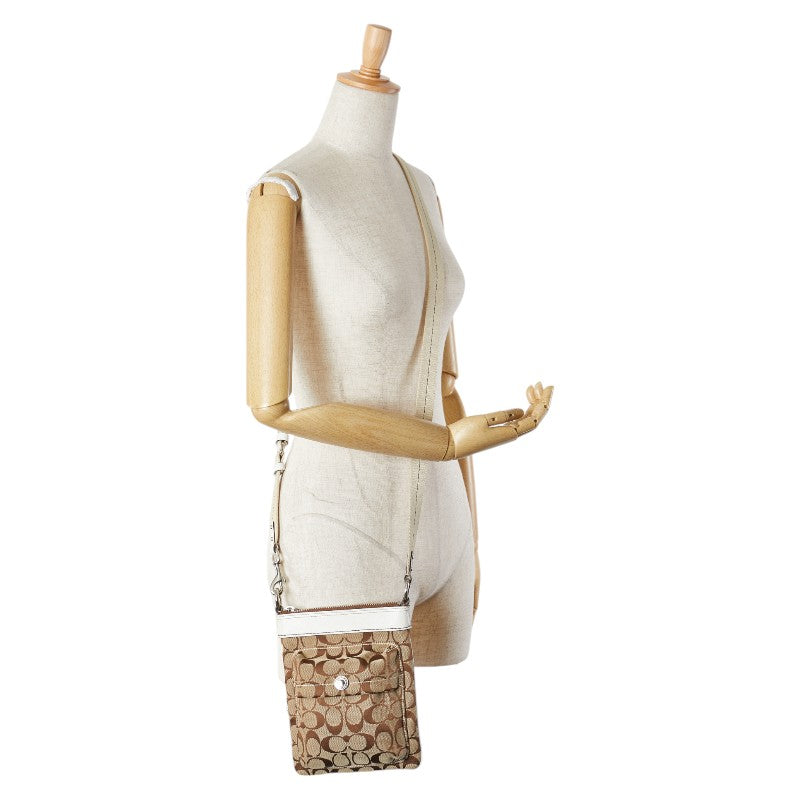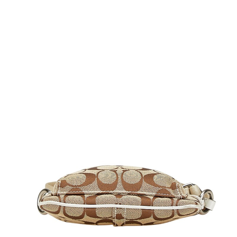 コーチ シグネチャー ショルダーバッグ ブラウン ホワイト キャンバス レザー レディース COACH 【中古】