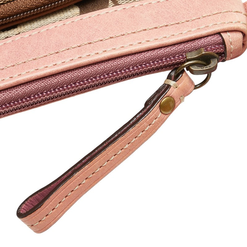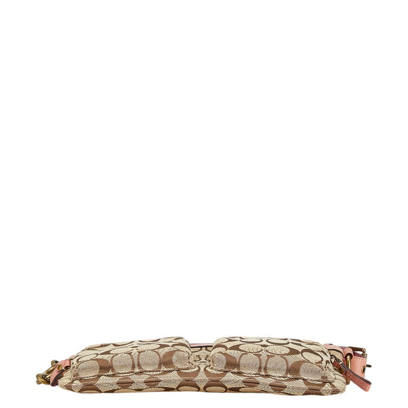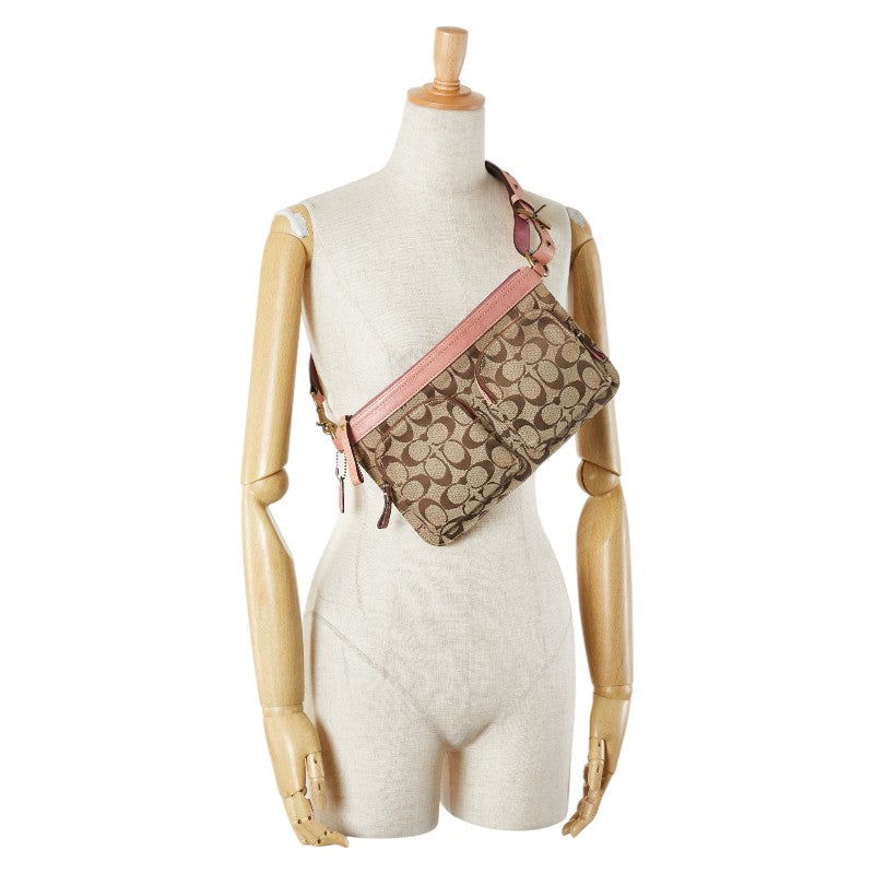 コーチ シグネチャー ショルダーバッグ ブラウン ピンク キャンバス レザー レディース COACH 【中古】