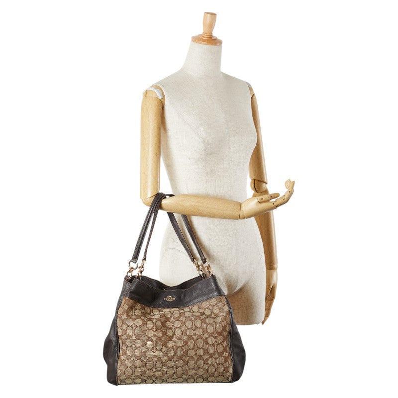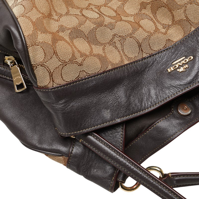 コーチ シグネチャー ハンドバッグ ブラウン キャンバス レザー レディース COACH 【中古】