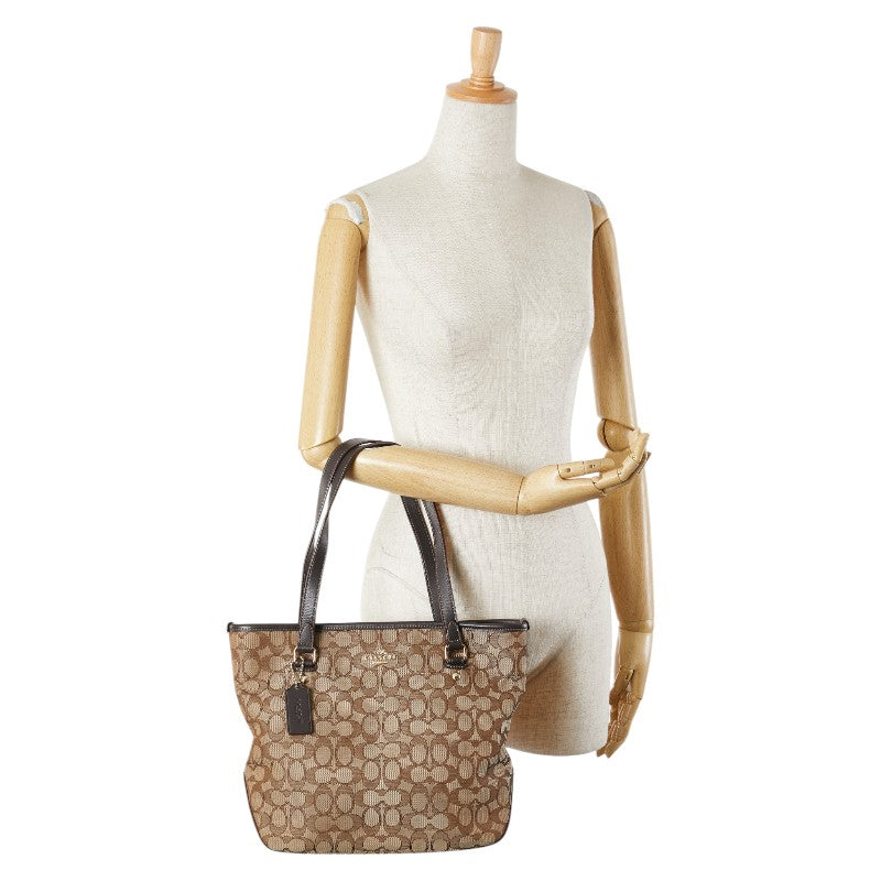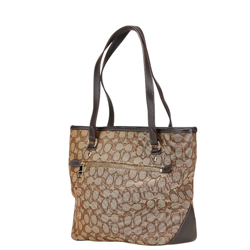 コーチ シグネチャー ハンドバッグ トートバッグ F58282 ブラウン キャンバス レザー レディース COACH 【中古】