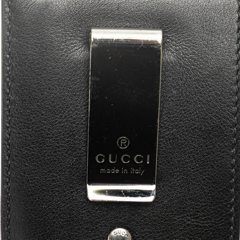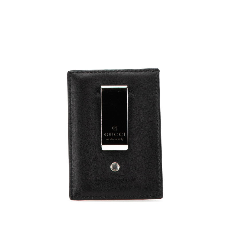 グッチ グッチシマ マネークリップ付 カードケース 名刺入れ 308915 1147 ブラック レザー レディース GUCCI 【中古】