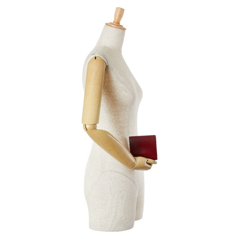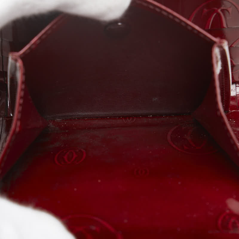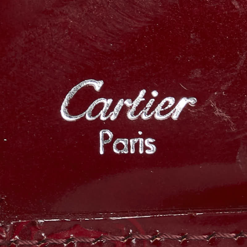 カルティエ ハッピーバースデー 三つ折り財布 ワインレッド ボルドー エナメル レディース CARTIER 【中古】