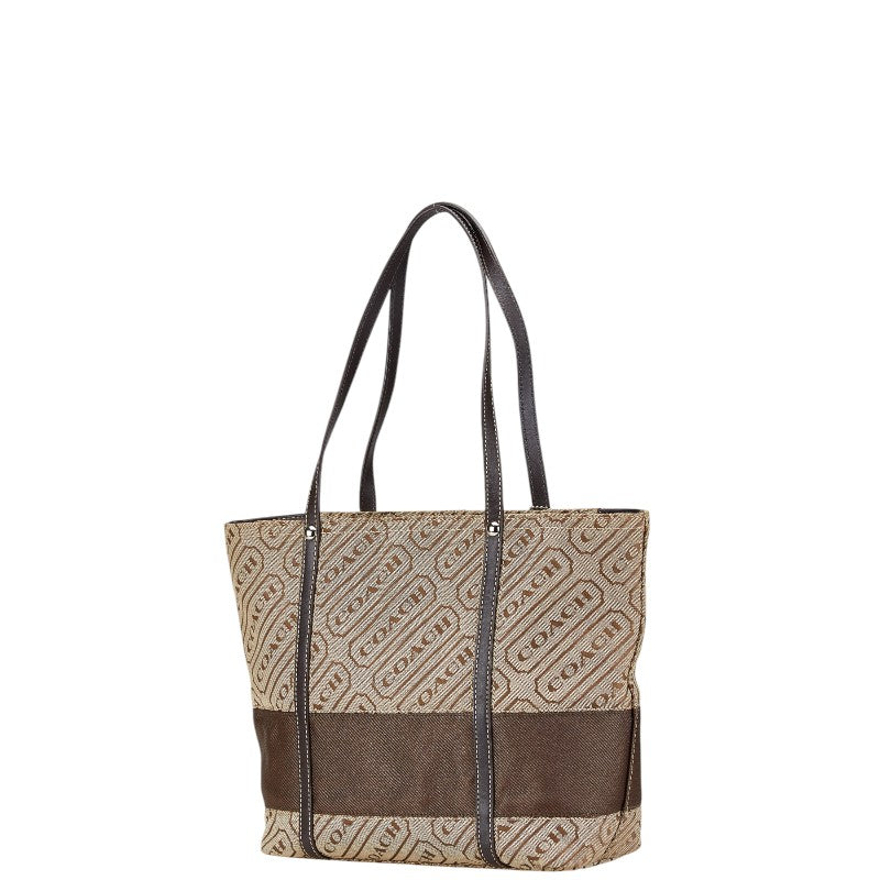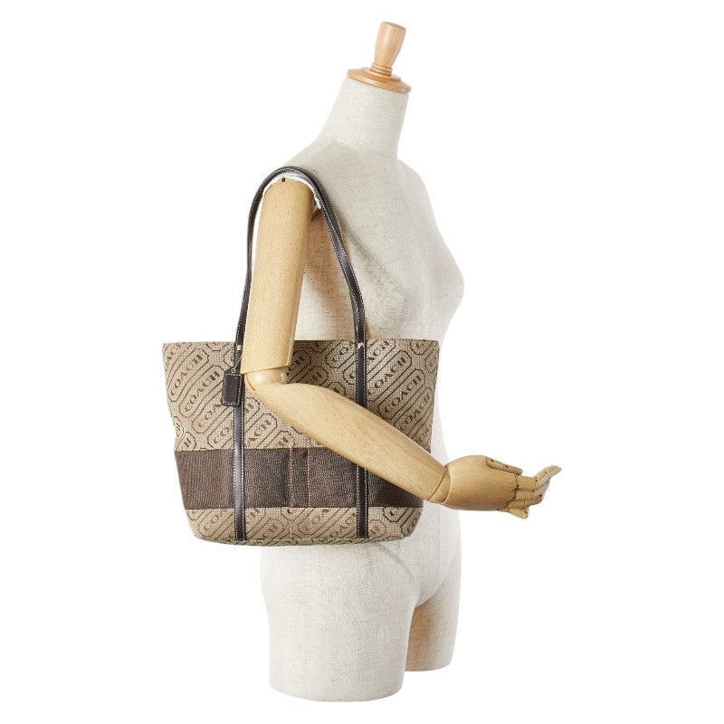 コーチ トートバッグ ハンドバッグ F12252 ベージュ ブラウン キャンバス レザー レディース COACH 【中古】