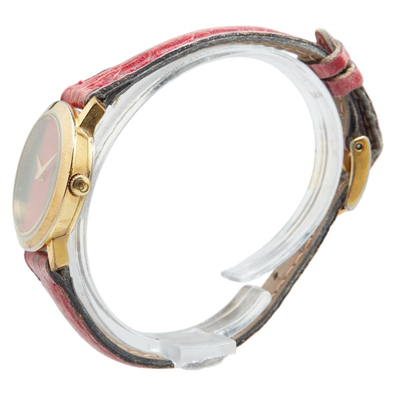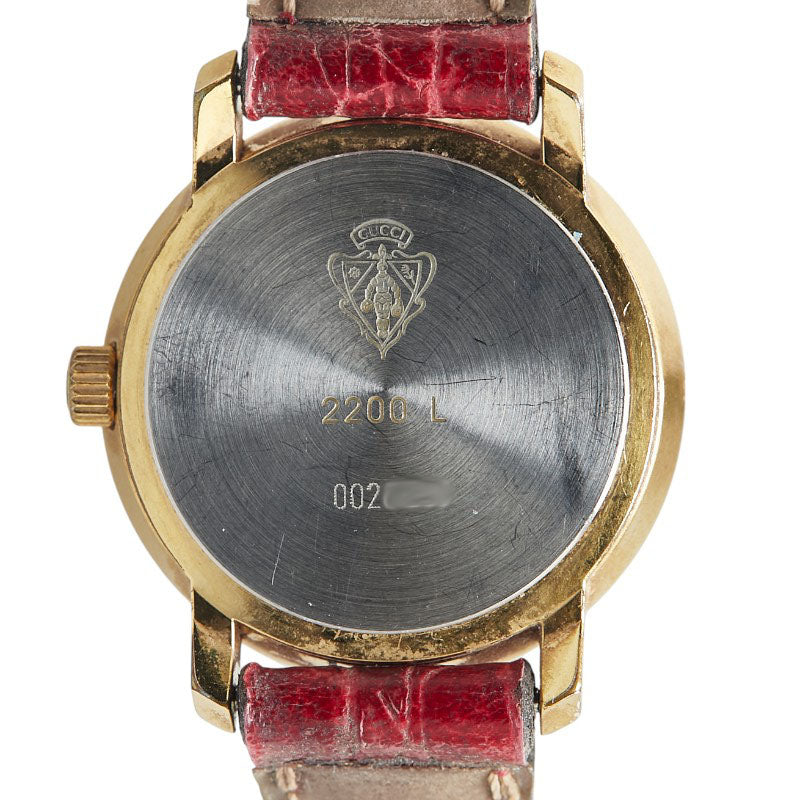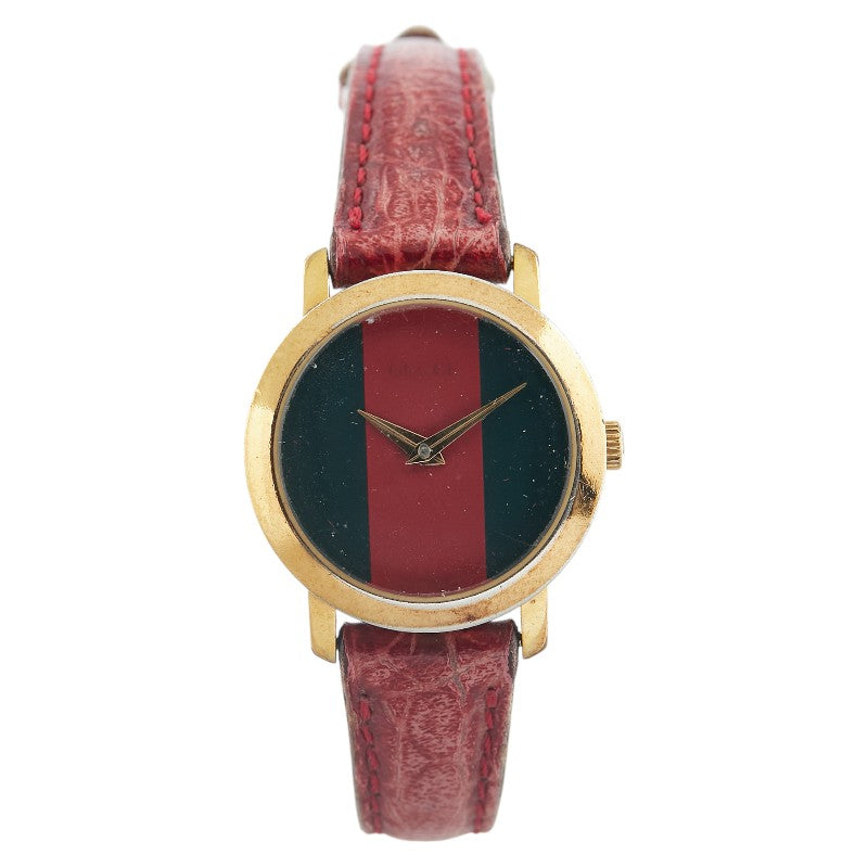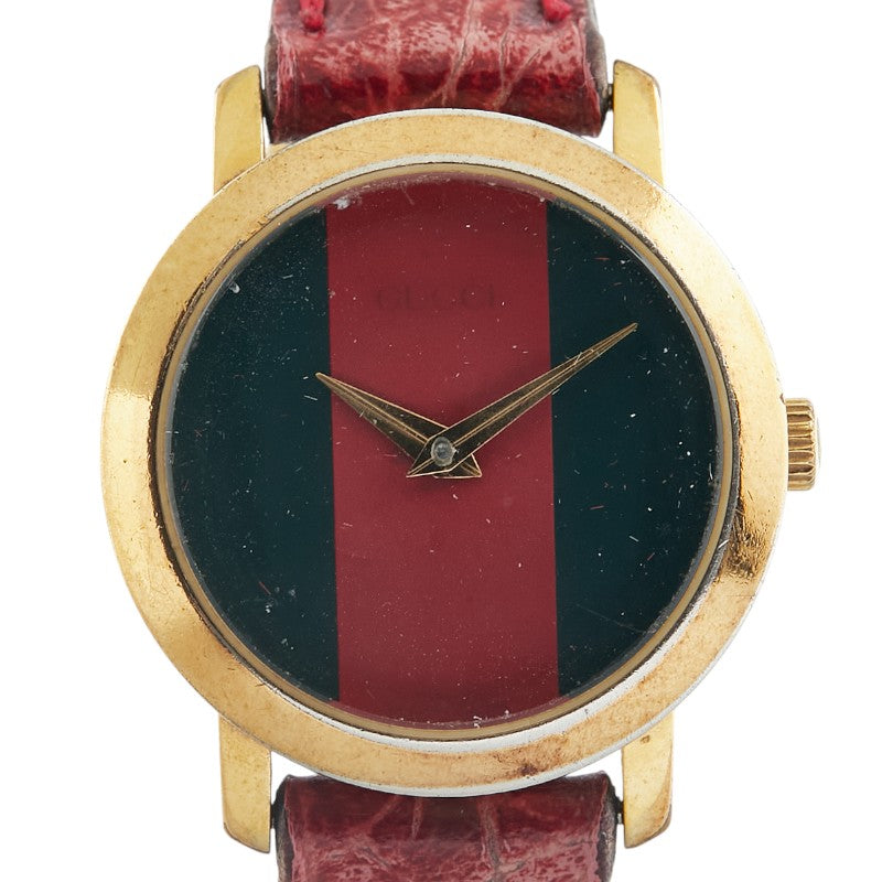 グッチ シェリーライン ベルト(社外品) 腕時計 2200L クオーツ グリーン文字盤 ステンレススチール レザー レディース GUCCI 【中古】