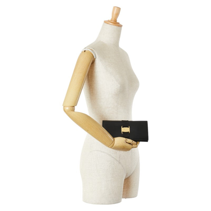 サルヴァトーレフェラガモ ヴァラリボン 二つ折り財布 ブラック レザー レディース Salvatore Ferragamo 【中古】