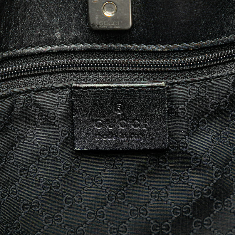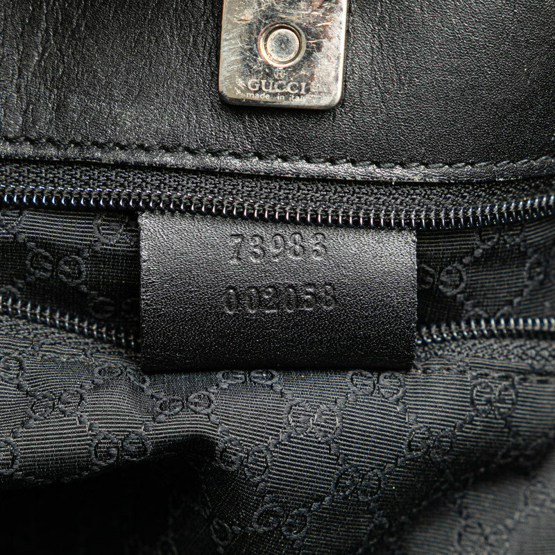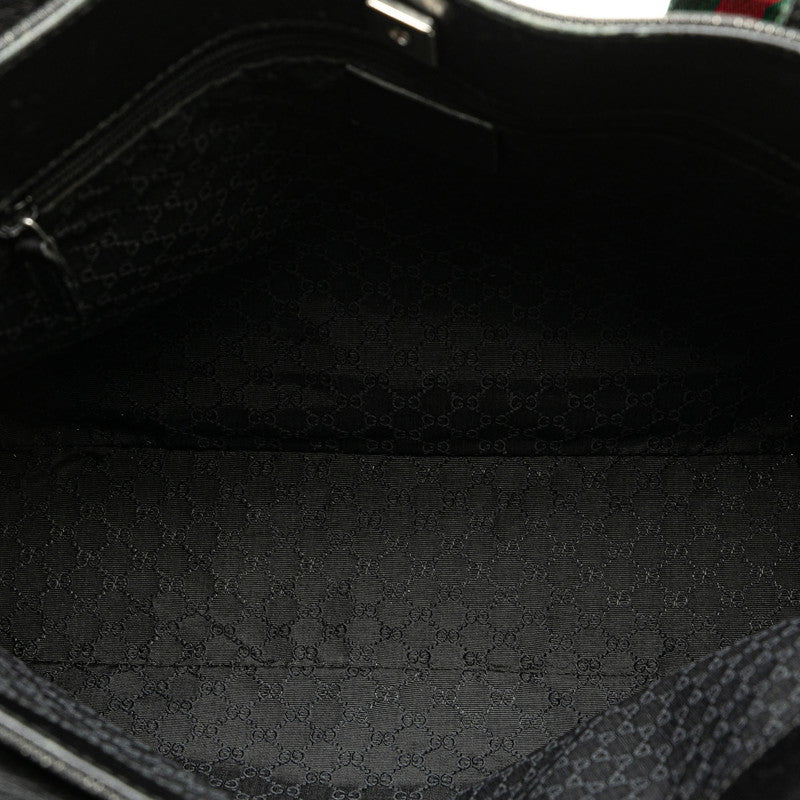 グッチ シェリーライン ハンドバッグ トートバッグ 73983 ブラック キャンバス レザー レディース GUCCI 【中古】