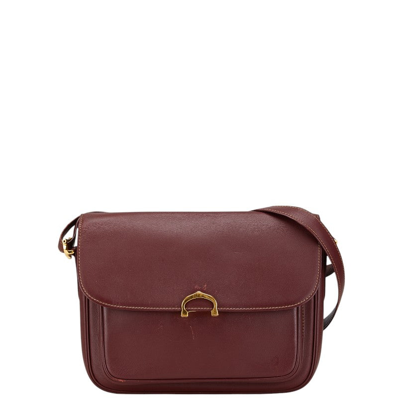 カルティエ マストライン 斜め掛け ショルダーバッグ ボルドー ワインレッド レザー レディース CARTIER 【中古】