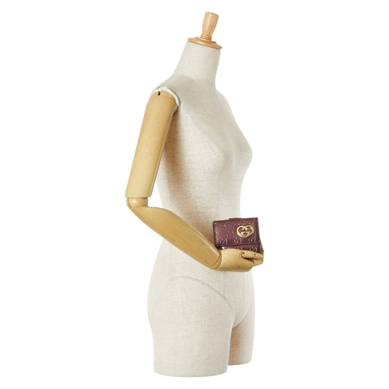 グッチ グッチシマ ハート 二つ折り財布 299924 ワインレッド ゴールド エナメル レディース GUCCI 【中古】