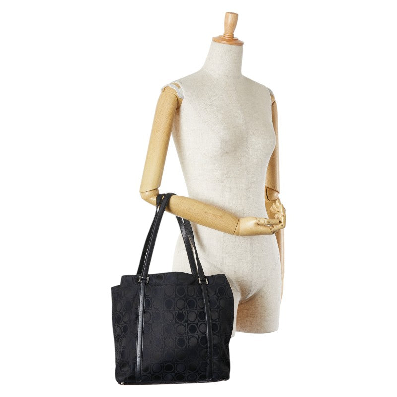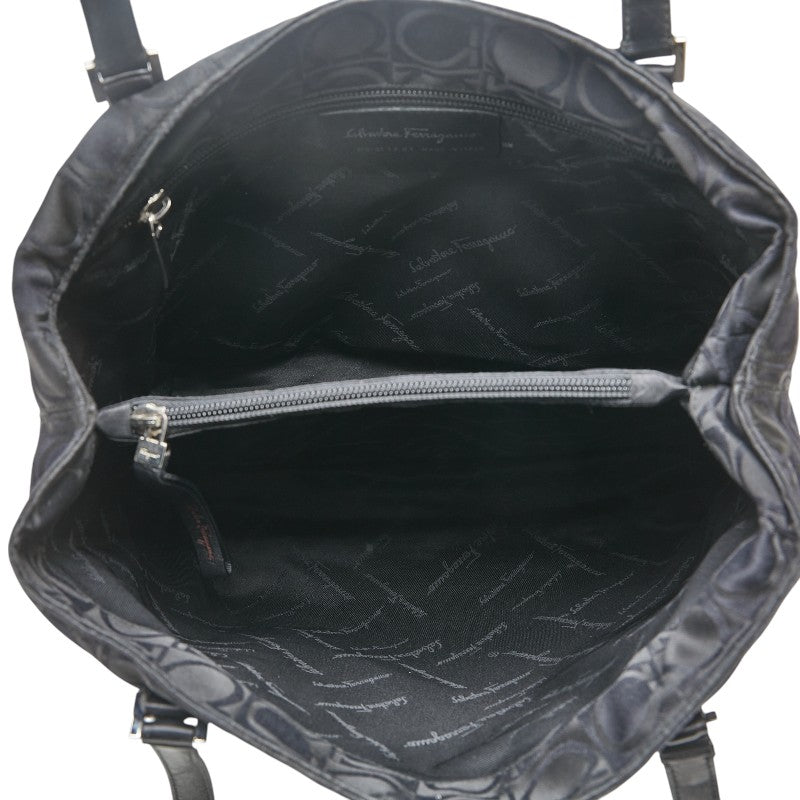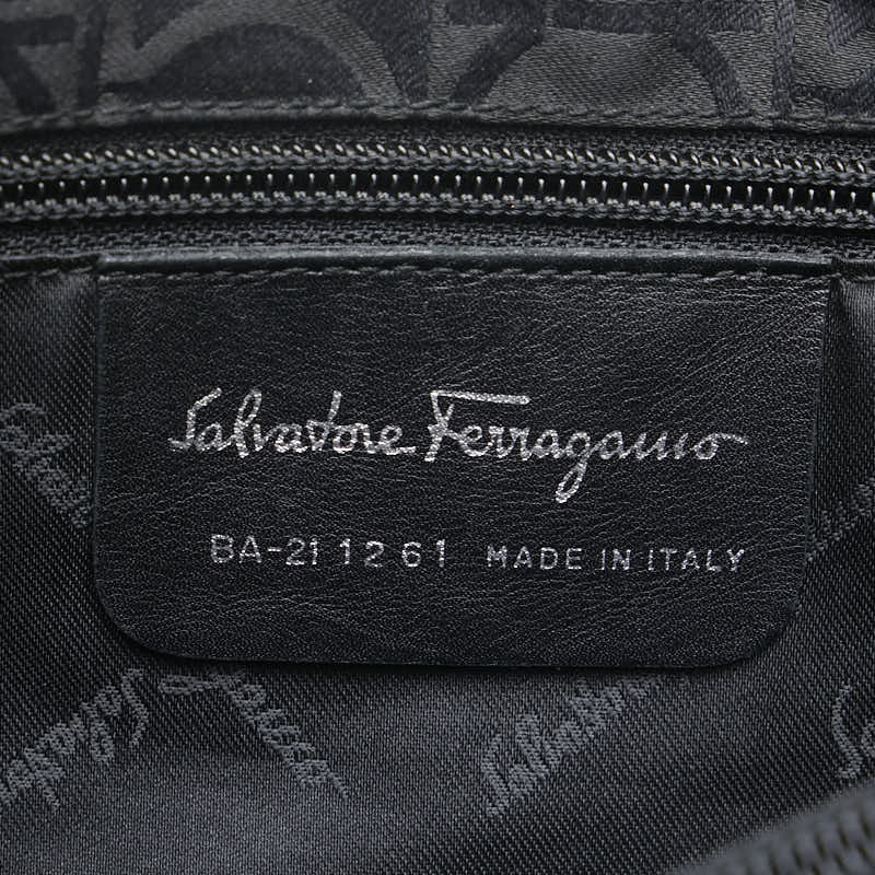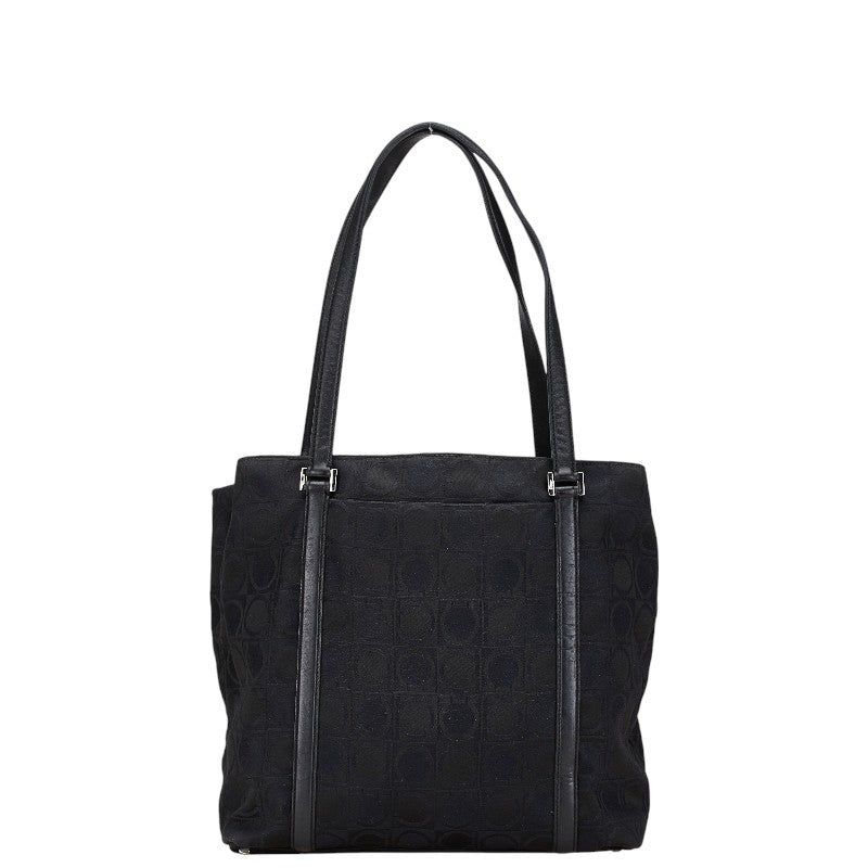 サルヴァトーレフェラガモ ガンチーニ柄 トートバッグ ショルダーバッグ BA-21 1261 ブラック キャンバス レザー レディース Salvatore Ferragamo 【中古】