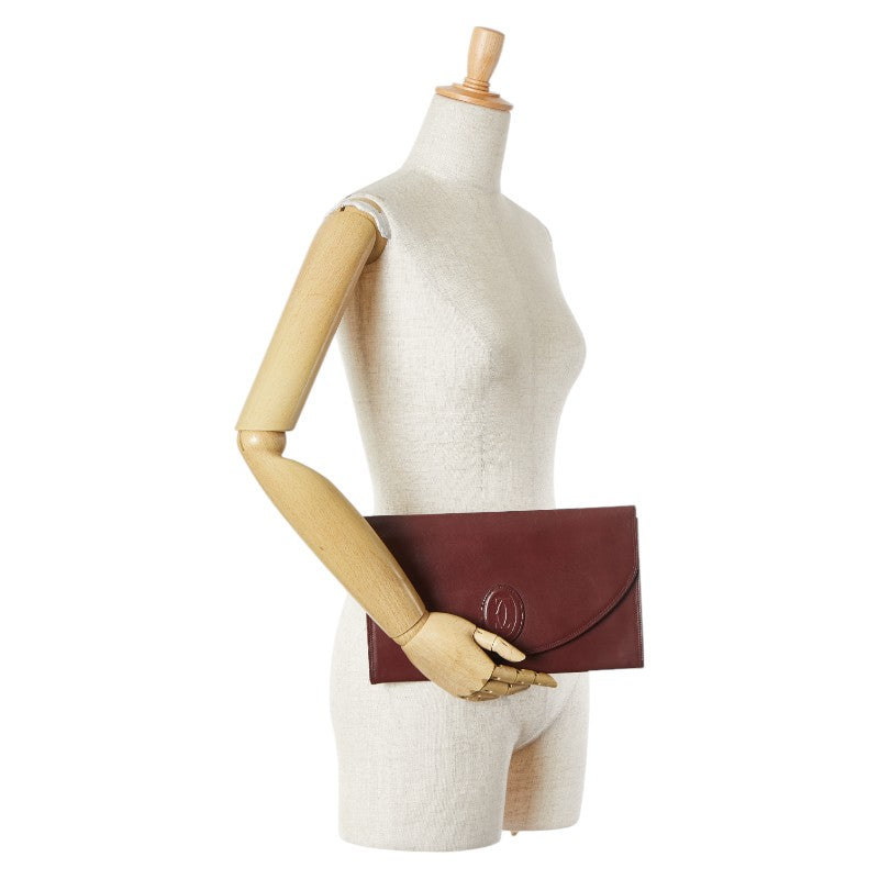 カルティエ マスト ドゥ カルティエ クラッチバッグ ワインレッド レザー レディース CARTIER 【中古】