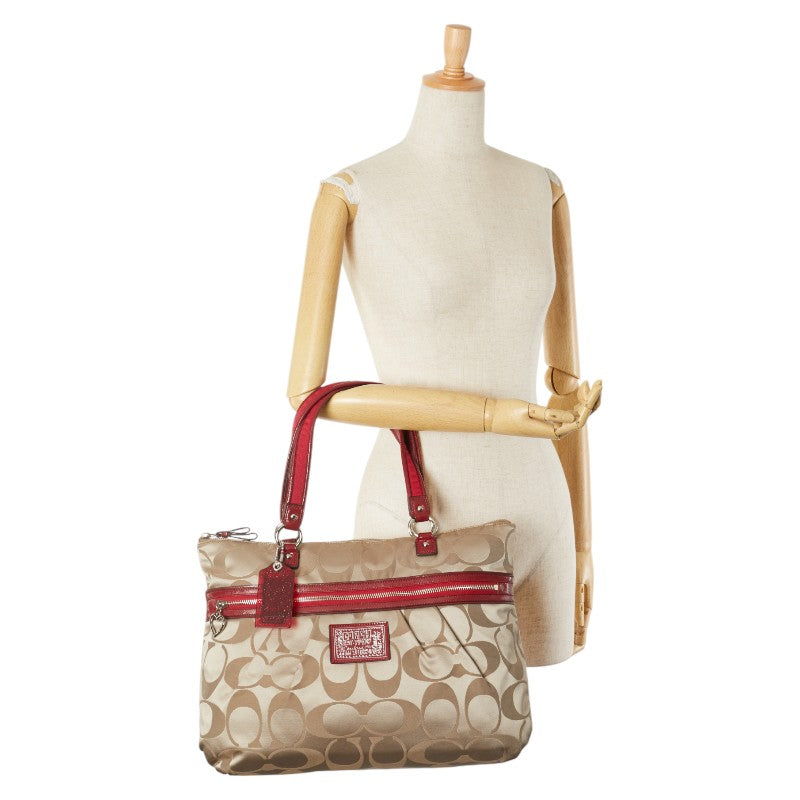 コーチ シグネチャー ハンドバッグ トートバッグ F20026 ベージュ レッド キャンバス ナイロン レディース COACH 【中古】
