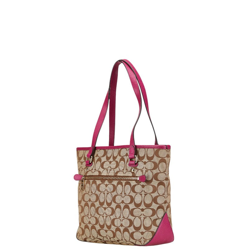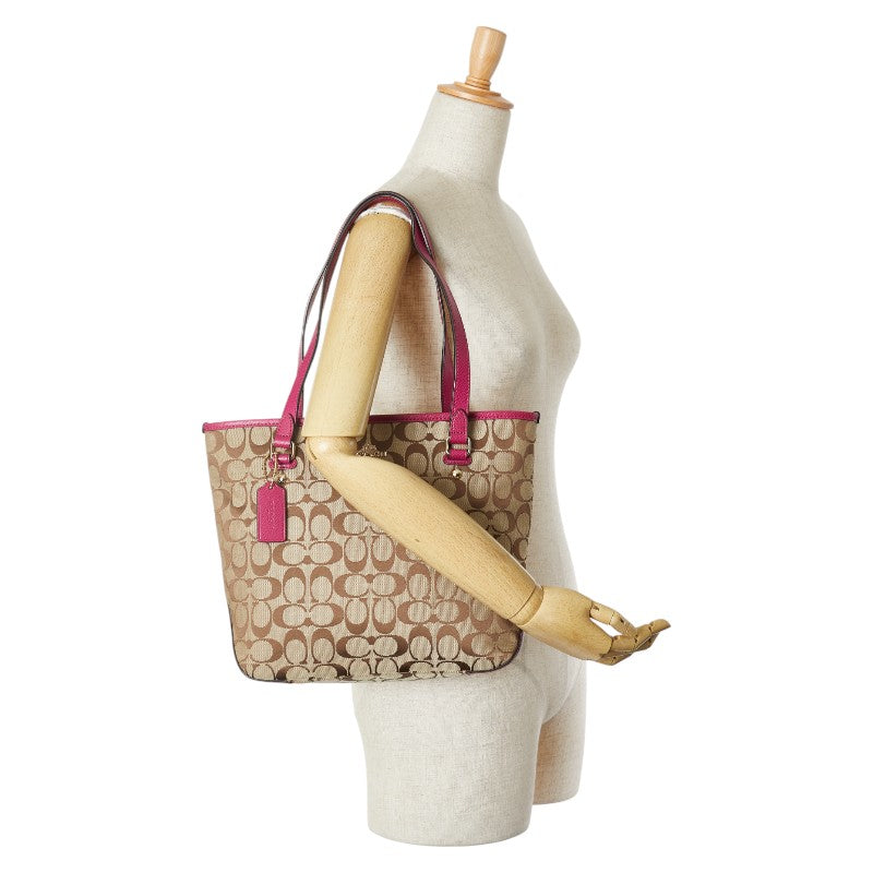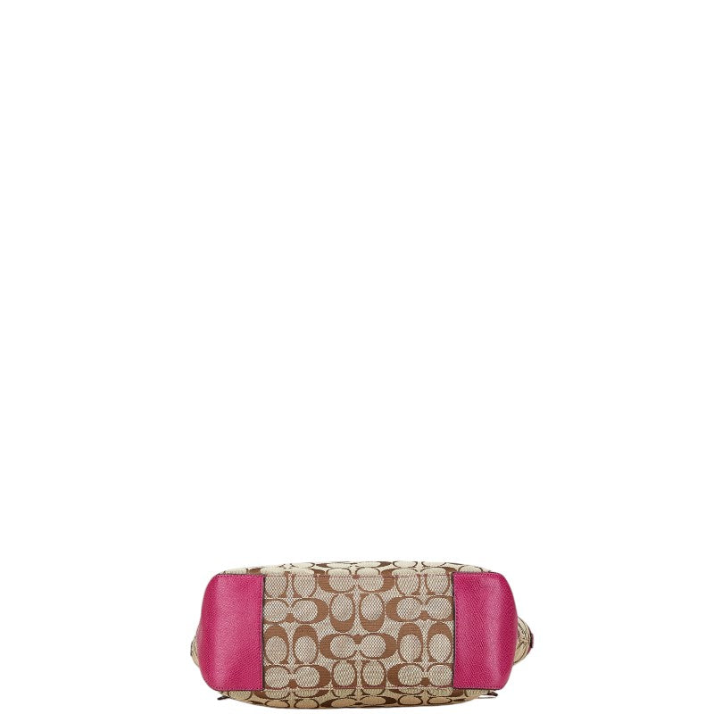 コーチ シグネチャー ハンドバッグ トートバッグ F36375 ベージュ ピンク キャンバス レザー レディース COACH 【中古】
