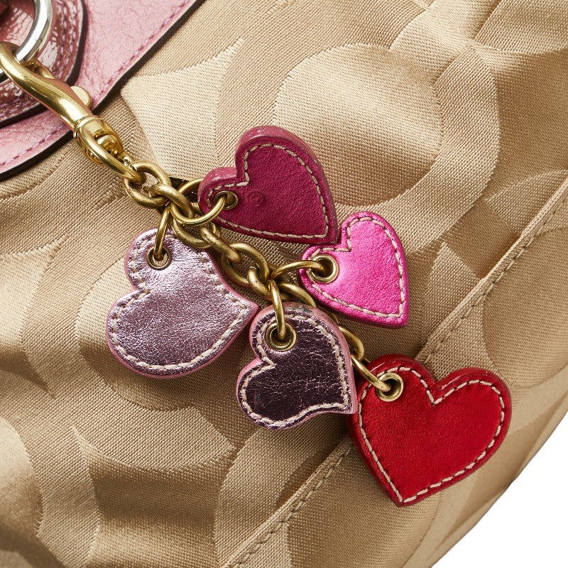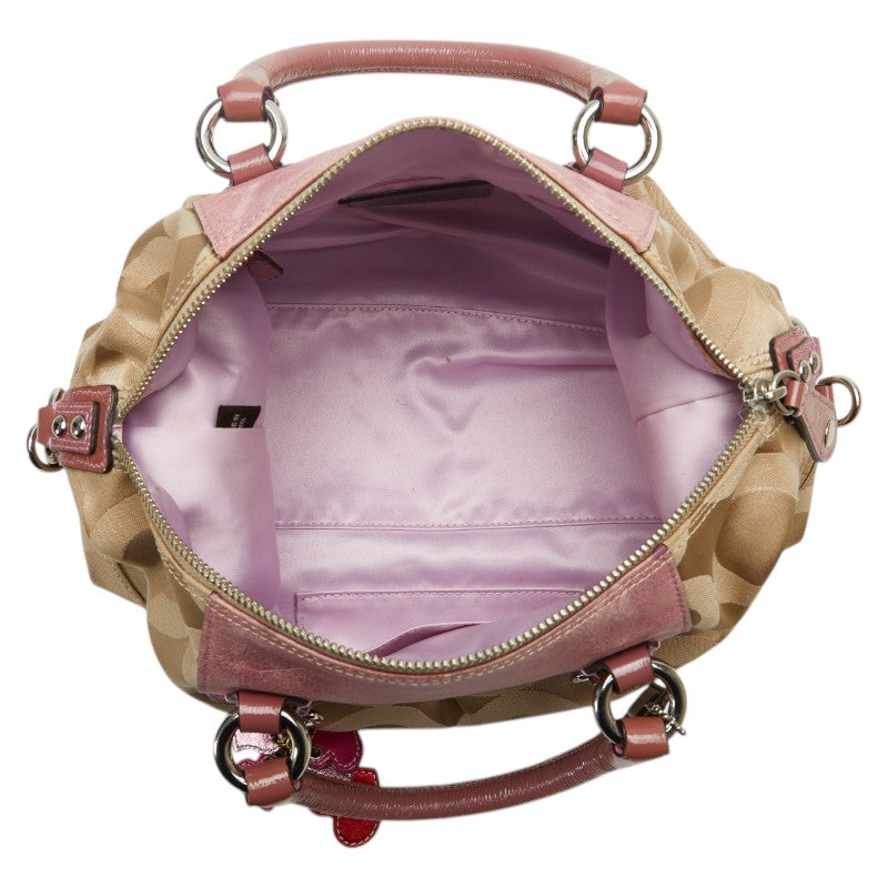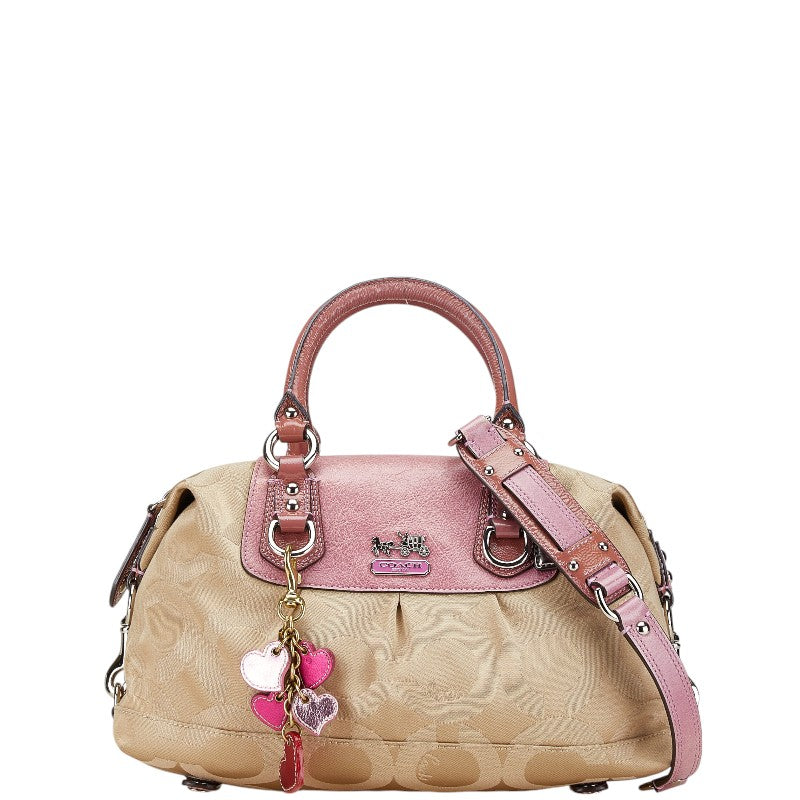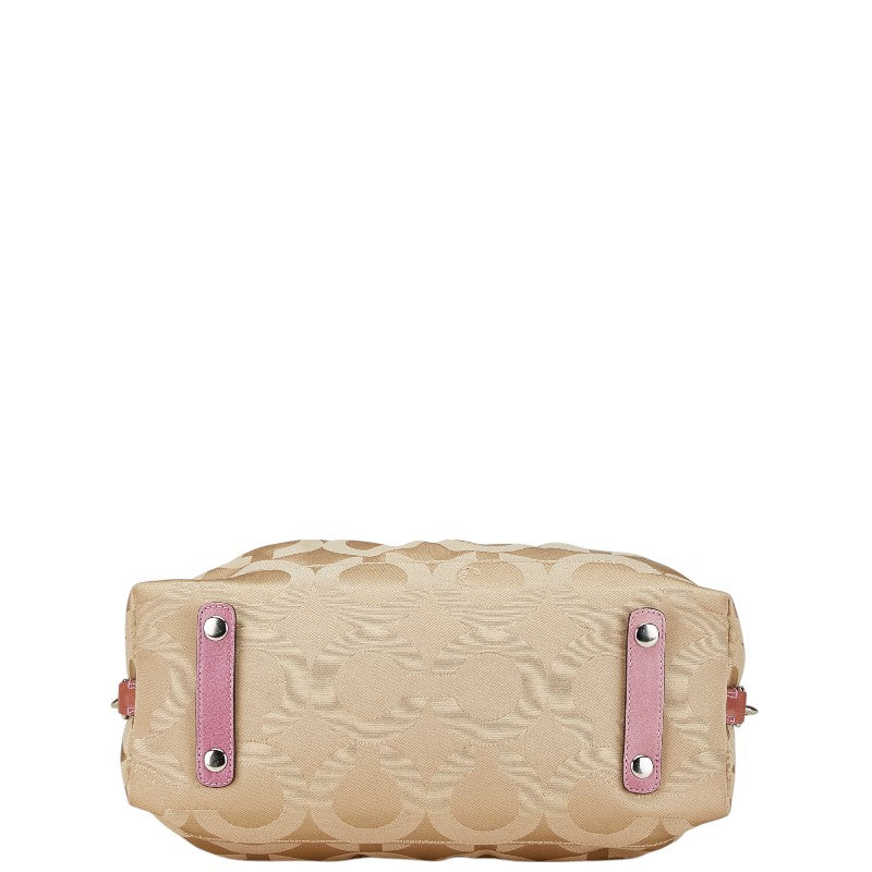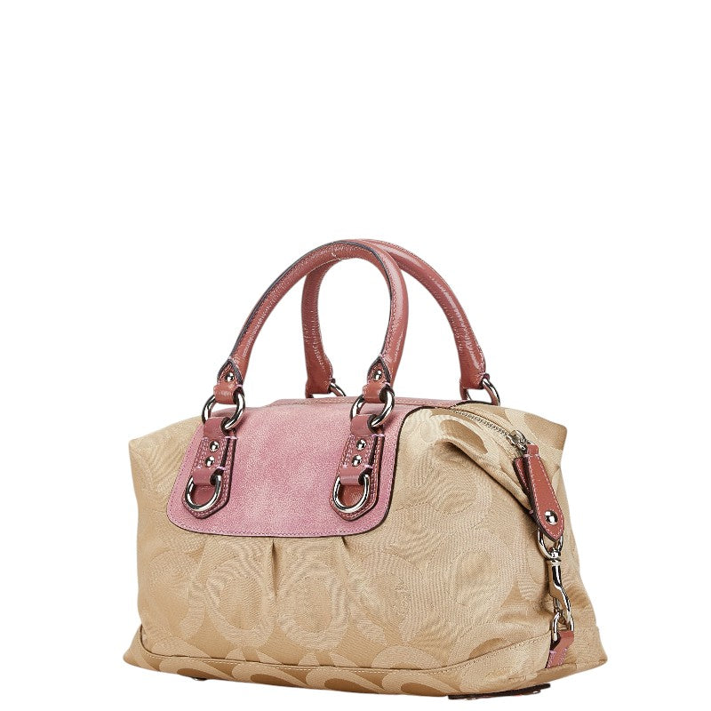 コーチ シグネチャー マディソン オプアート ハンドバッグ ショルダーバッグ 2WAY ベージュ ピンク キャンバス レザー レディース COACH 【中古】