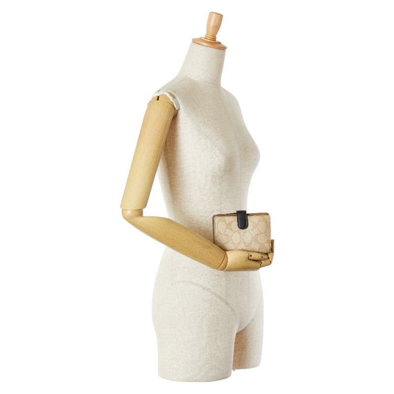 コーチ シグネチャー 二つ折り財布 F27147 ベージュ ブラウン PVC レザー レディース COACH 【中古】