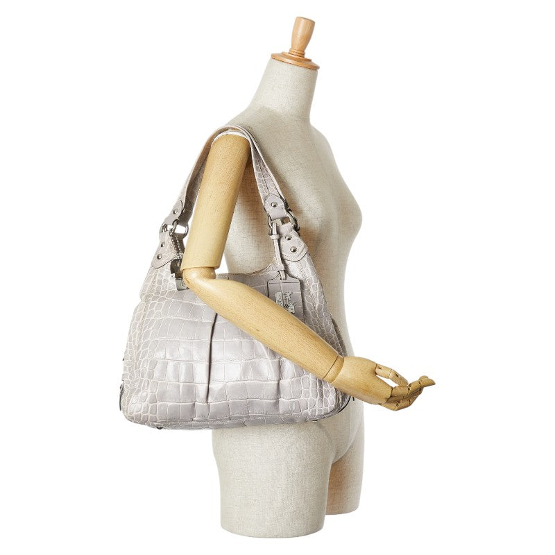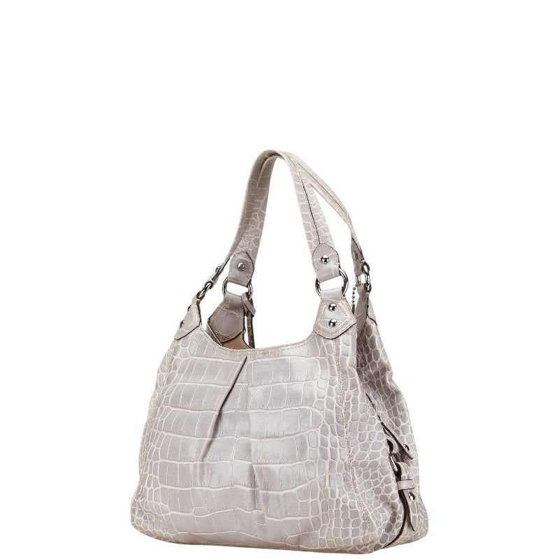 コーチ クロコ型押し ハンドバッグ 14602 グレー レザー レディース COACH 【中古】