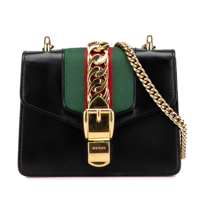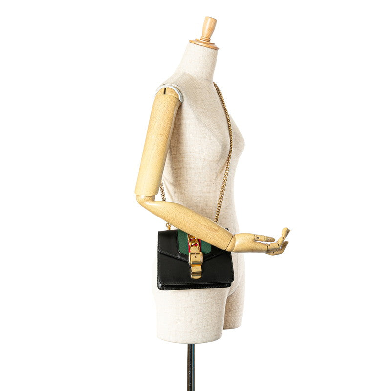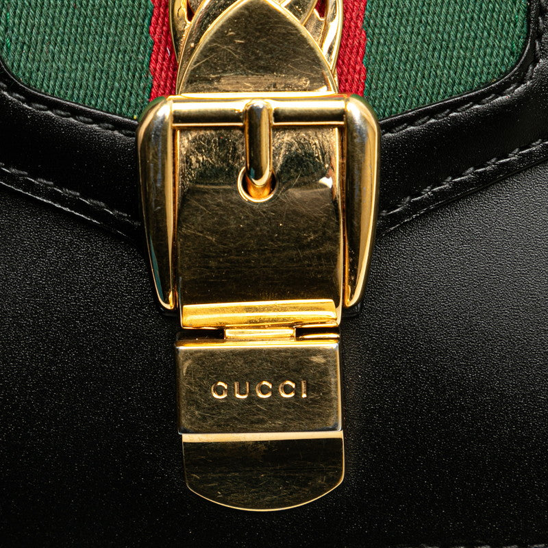 グッチ シェリーライン シルヴィ スモール 斜め掛け チェーン ショルダーバッグ 431666 ブラック マルチカラー レザー レディース GUCCI 【中古】