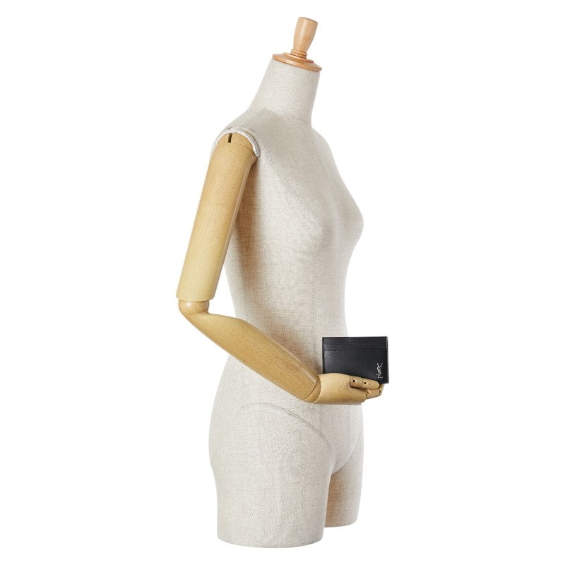 サンローラン ロゴ カードケース ブラック レザー レディース SAINT LAURENT 【中古】