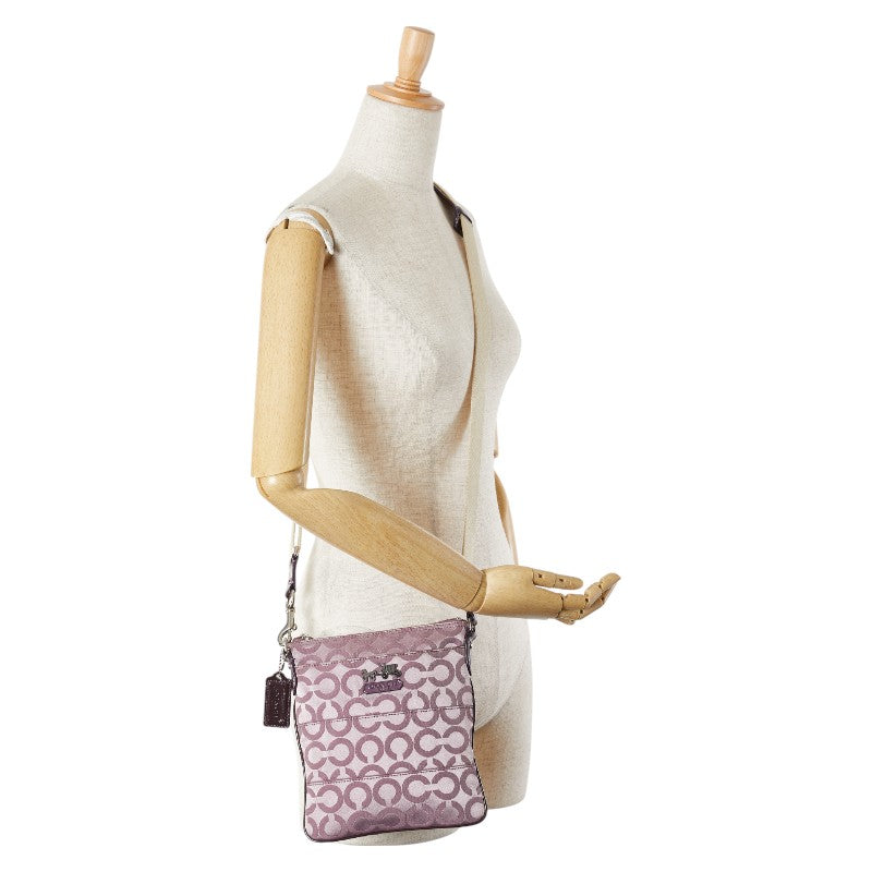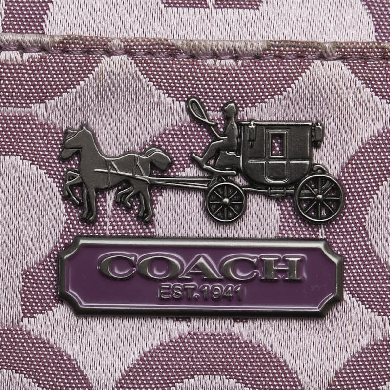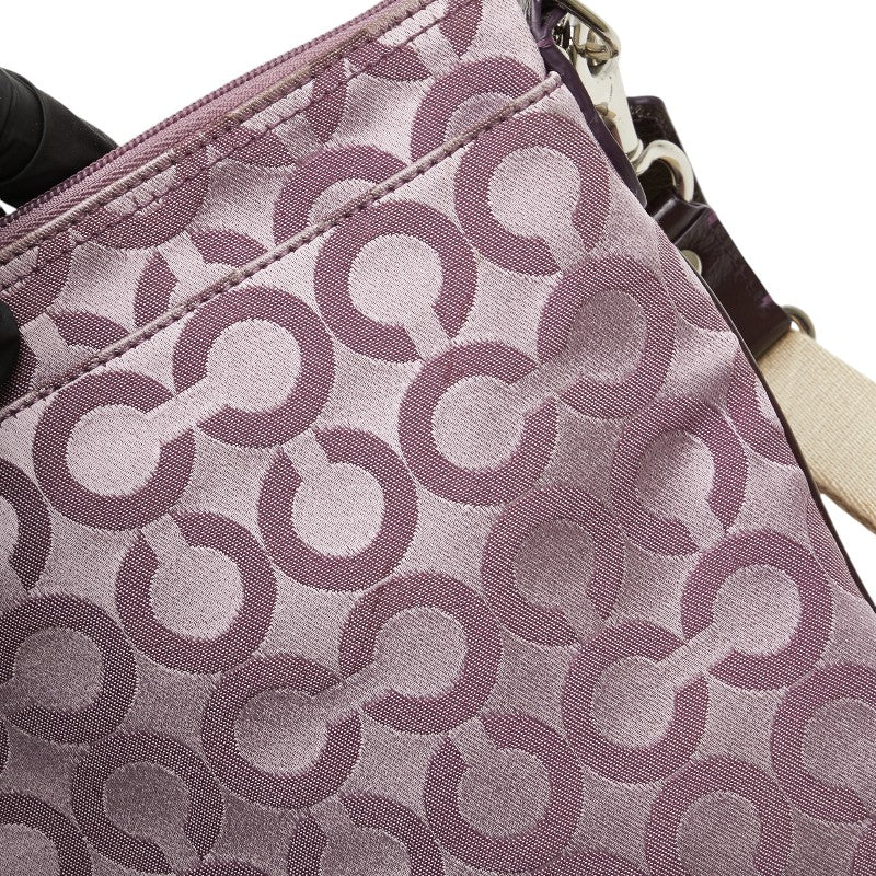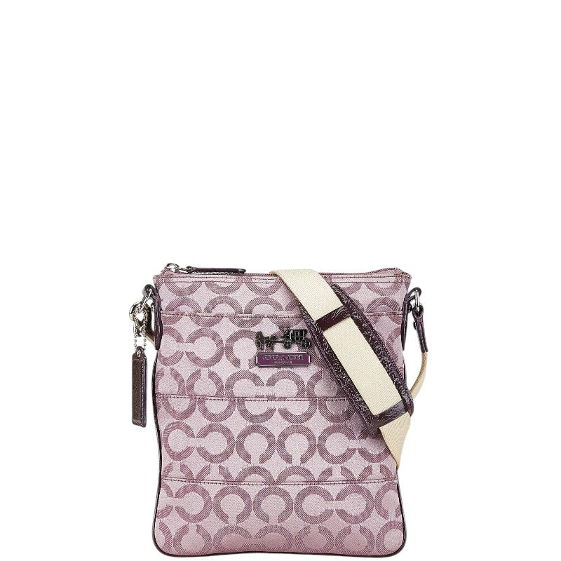 コーチ トライベッカ オプアート 斜め掛け ショルダーバッグ 43131 パープル ベージュ キャンバス エナメル レディース COACH 【中古】