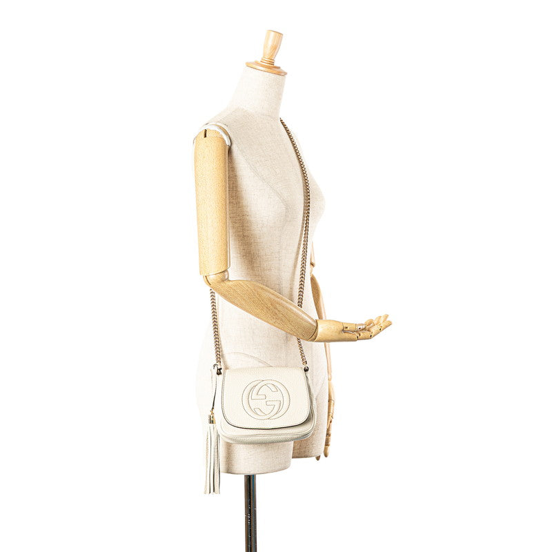 グッチ インターロッキングG ソーホー チェーン ショルダーバッグ 323190 ホワイト アイボリー レザー レディース GUCCI 【中古】