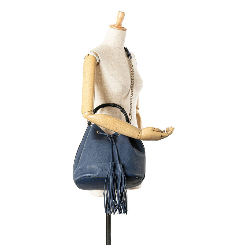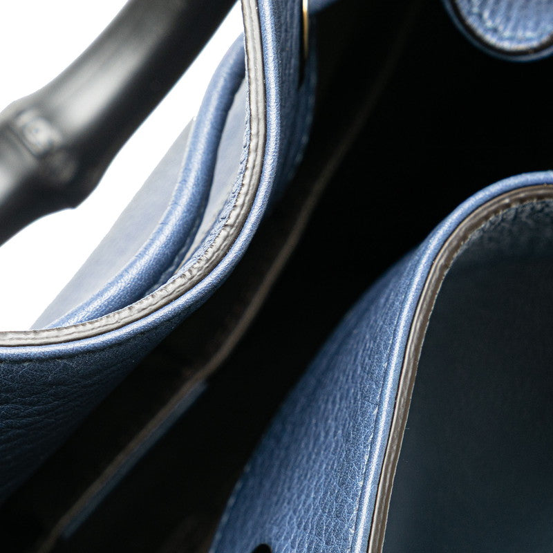 グッチ バンブー ハンドバッグ ショルダーバッグ 2WAY 387613 ブルー レザー レディース GUCCI 【中古】