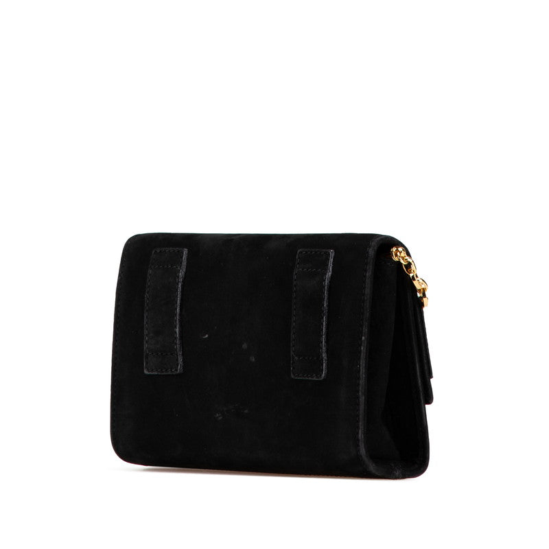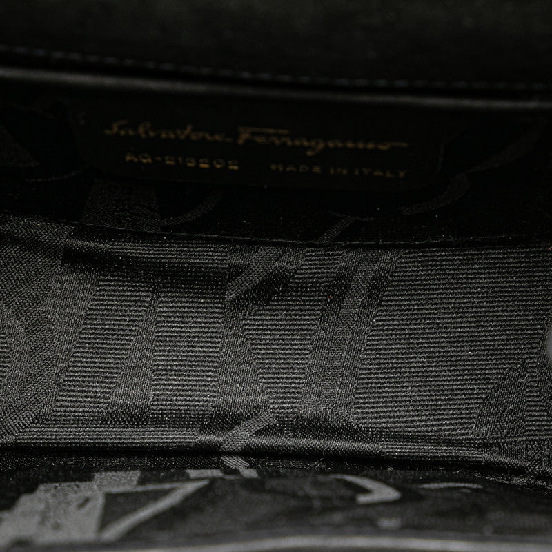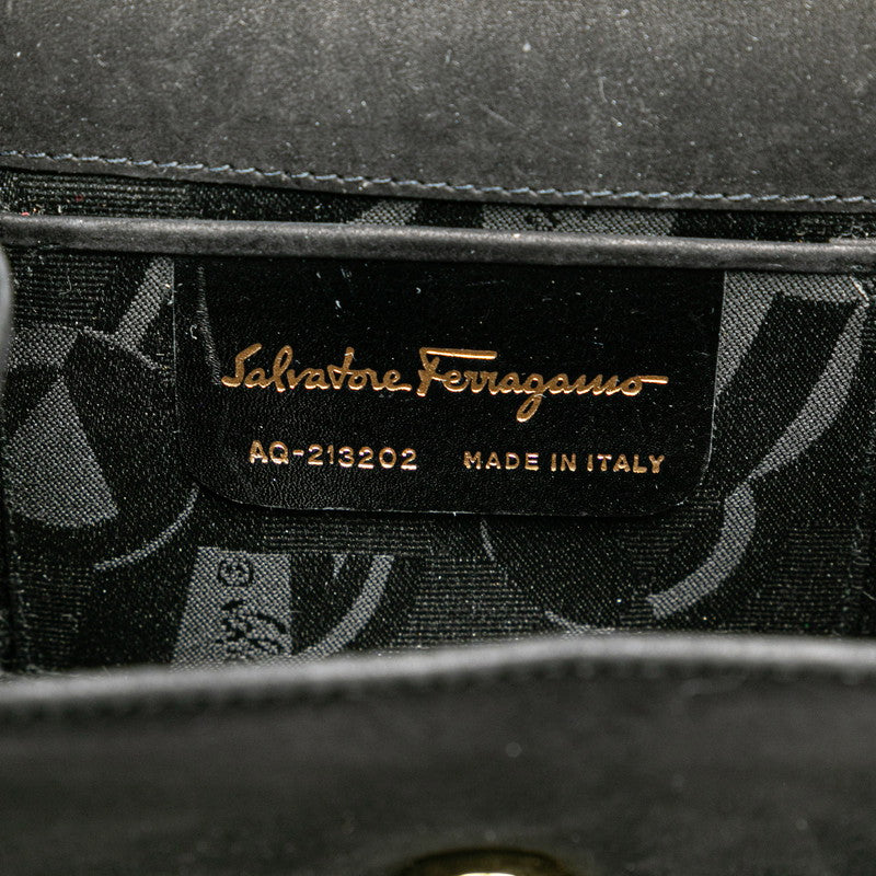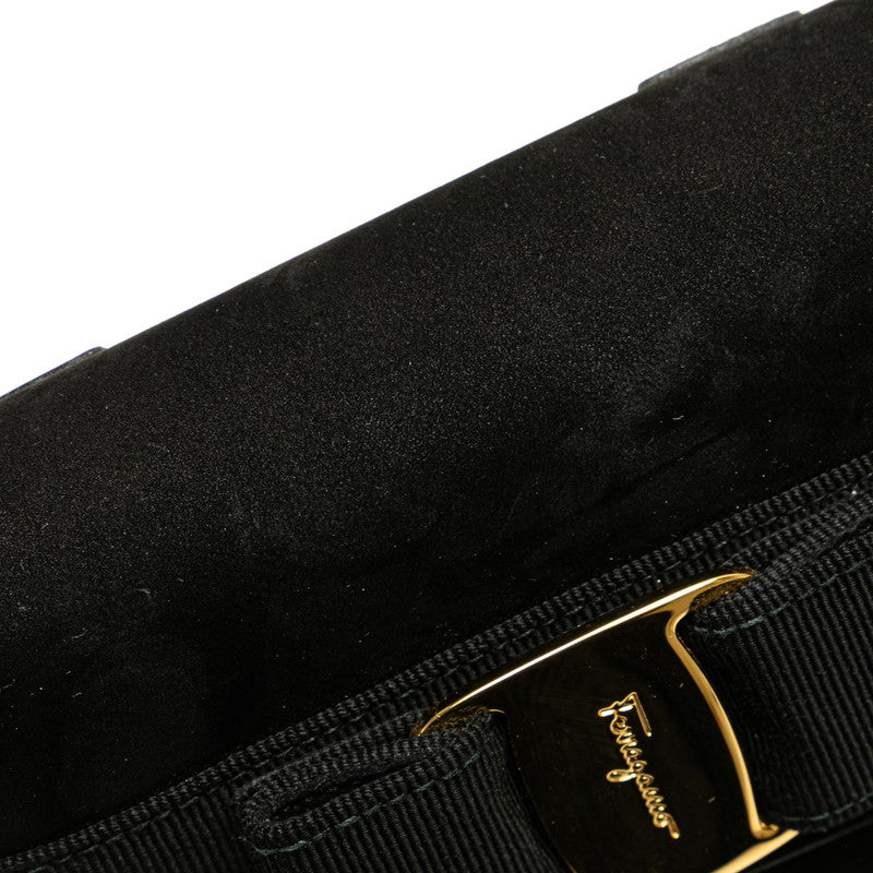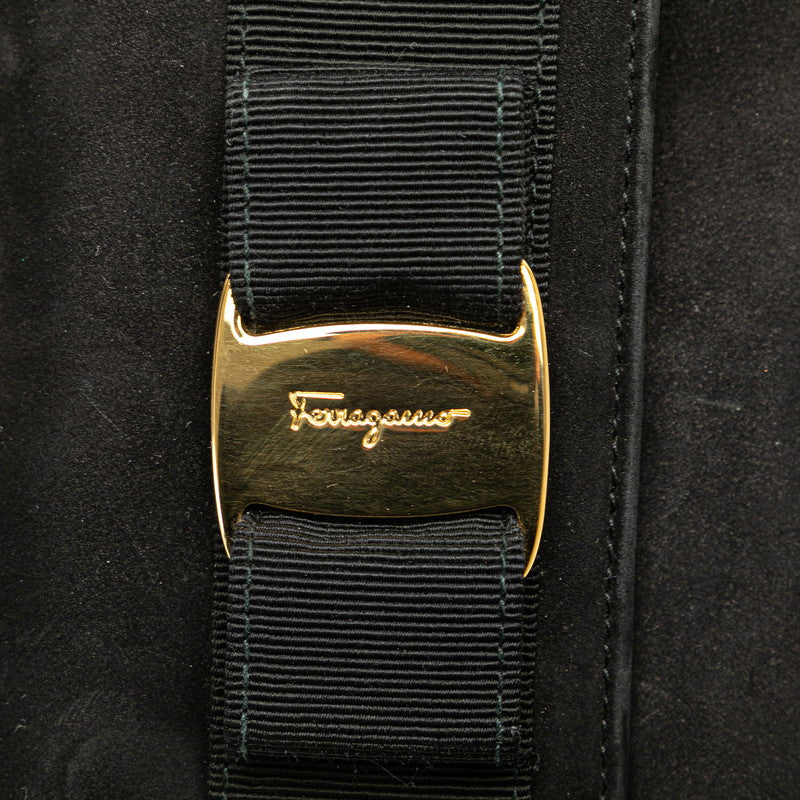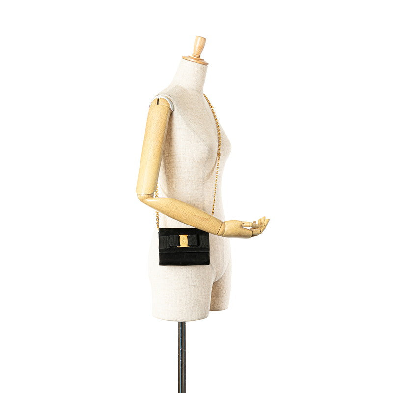 サルヴァトーレフェラガモ ヴァラリボン チェーン ショルダーバッグ ブラック スエード レディース Salvatore Ferragamo 【中古】