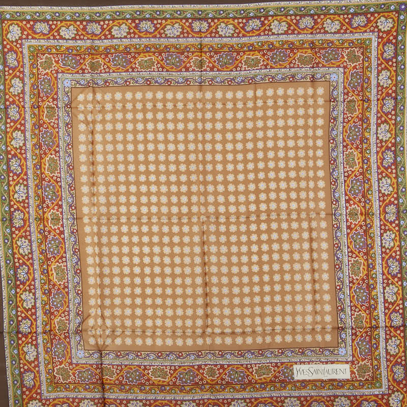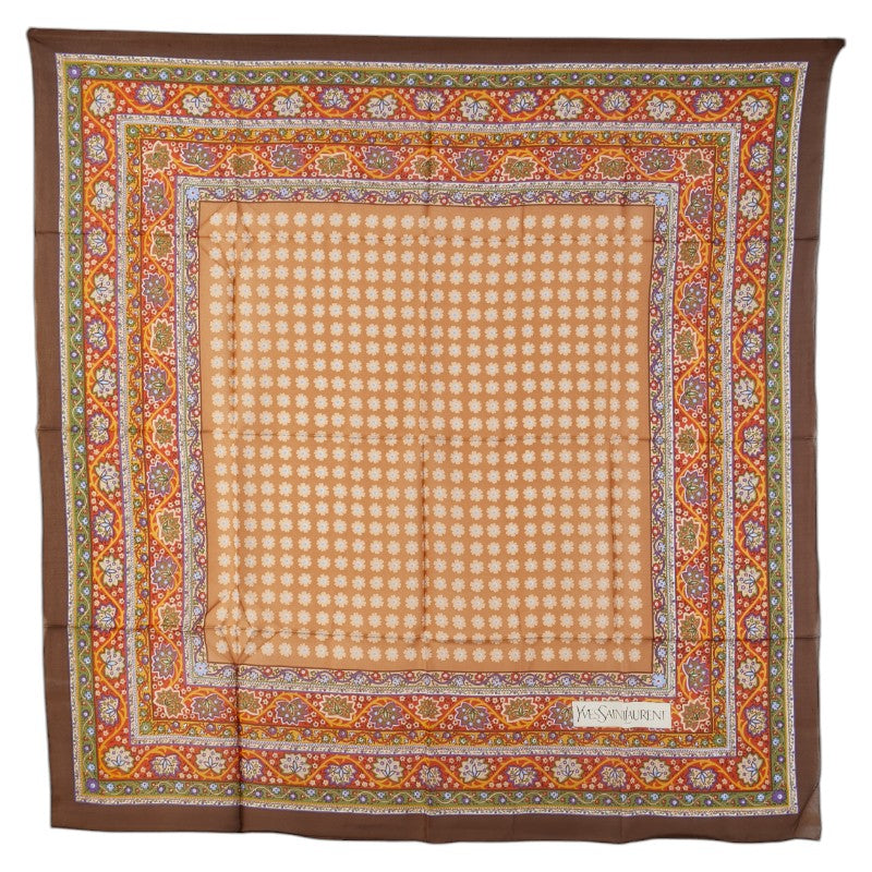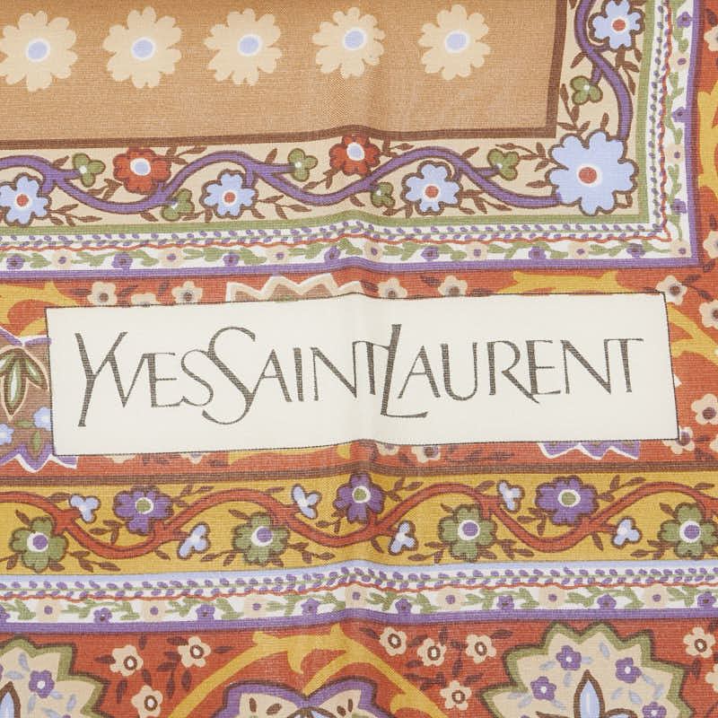 サンローラン フラワー 花 葉っぱ スカーフ ブラウン マルチカラー シルク レディース SAINT LAURENT 【中古】