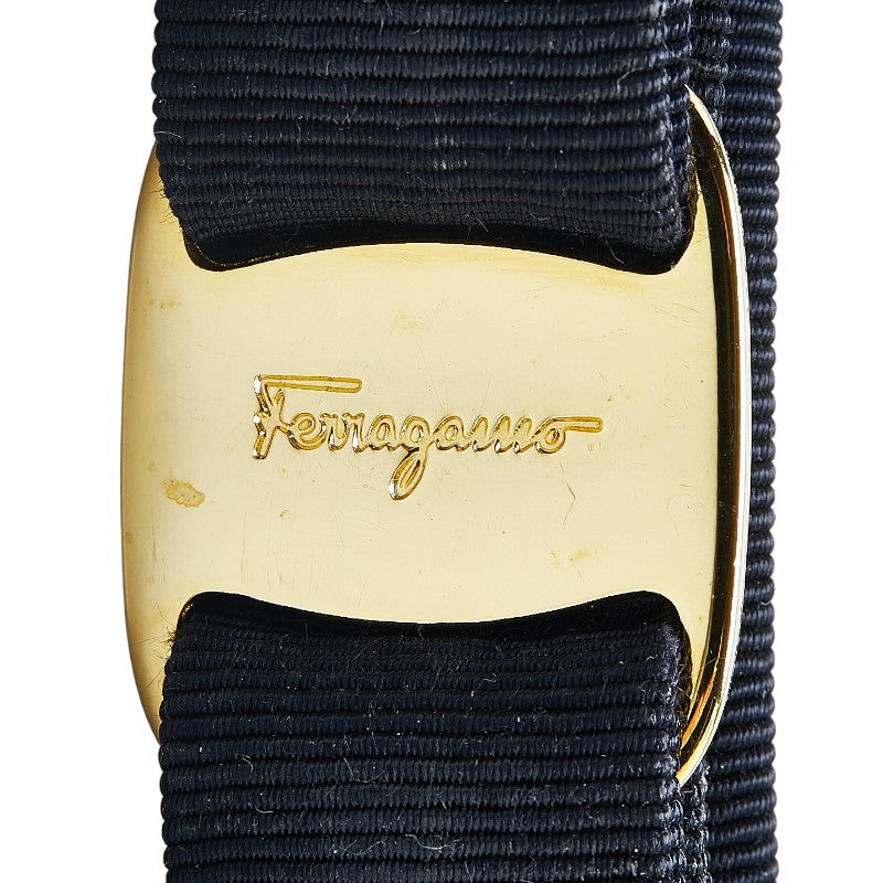 サルヴァトーレフェラガモ ヴァラリボン バレッタ ブラック ゴールド キャンバス メッキ レディース Salvatore Ferragamo 【中古】