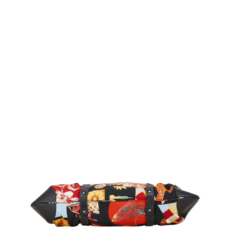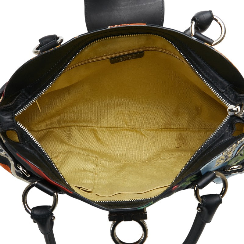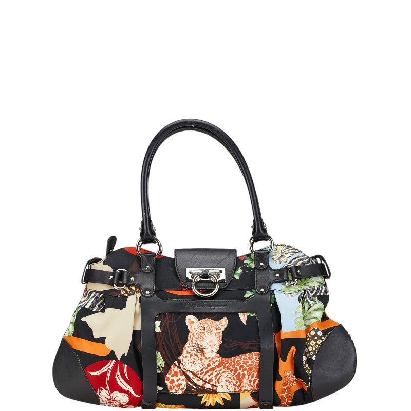 サルヴァトーレフェラガモ サバンナ アニマル ハンドバッグ AU-21 7477 ブラック マルチカラー ナイロン レザー レディース Salvatore Ferragamo 【中古】