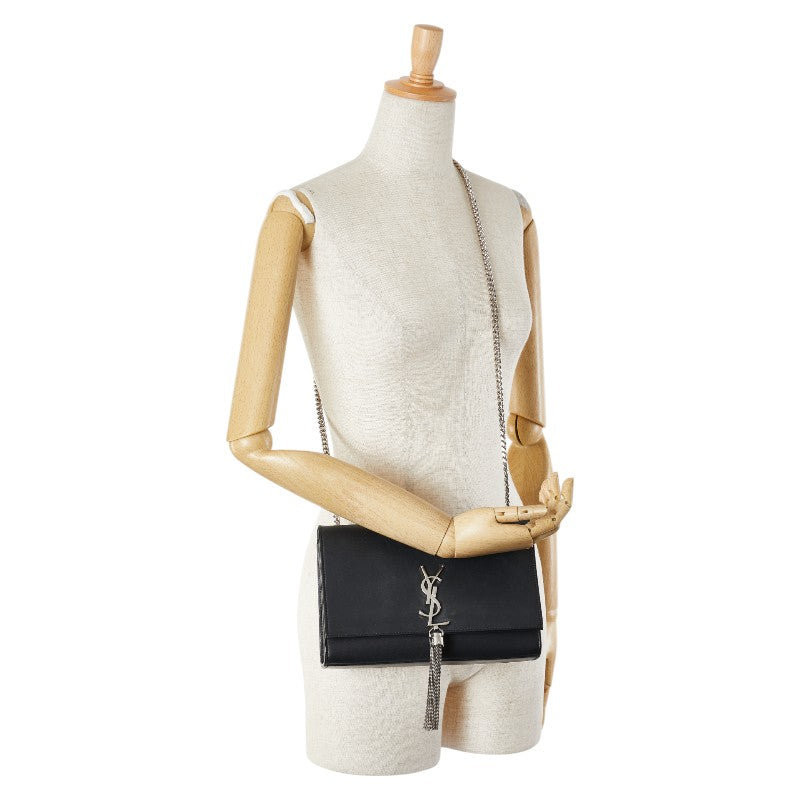 サンローラン クラック ケイト 斜め掛け チェーンショルダーバッグ 354119 ブラック レザー レディース SAINT LAURENT 【中古】