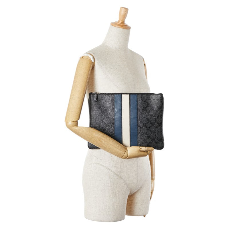 コーチ シグネチャー ストライプ クラッチバッグ セカンドバッグ F26071 グレー マルチカラー PVC メンズ COACH 【中古】