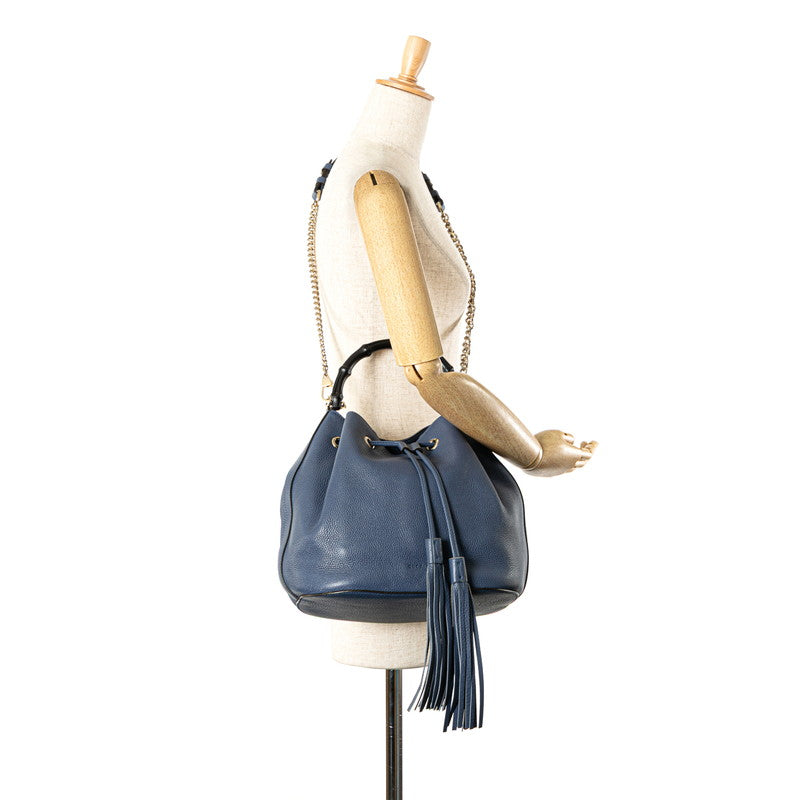 グッチ バンブー ハンドバッグ ショルダーバッグ 2WAY 387613 ブルー レザー レディース GUCCI 【中古】