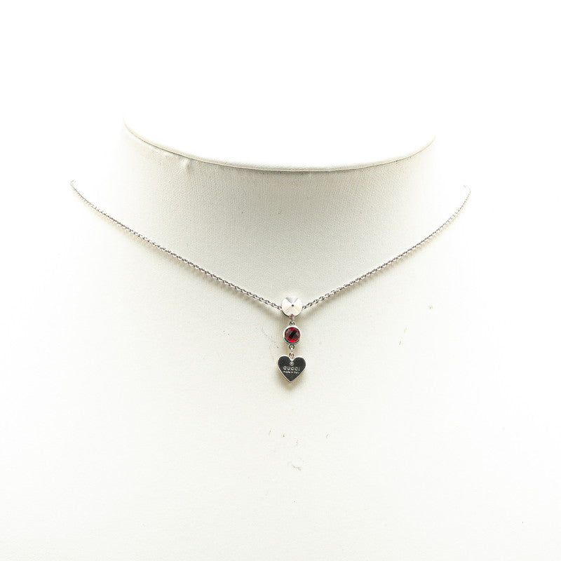 グッチ ハート スタッズ ビジュー ネックレス SV925 シルバー レディース GUCCI 【中古】