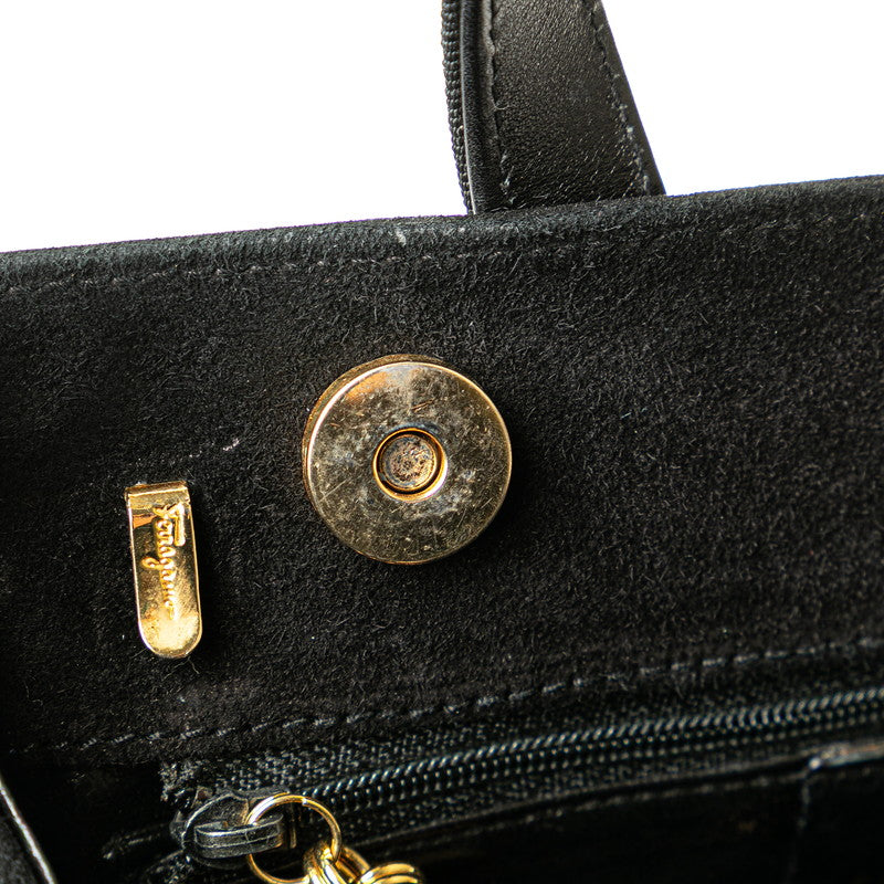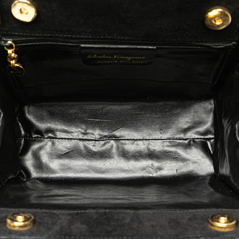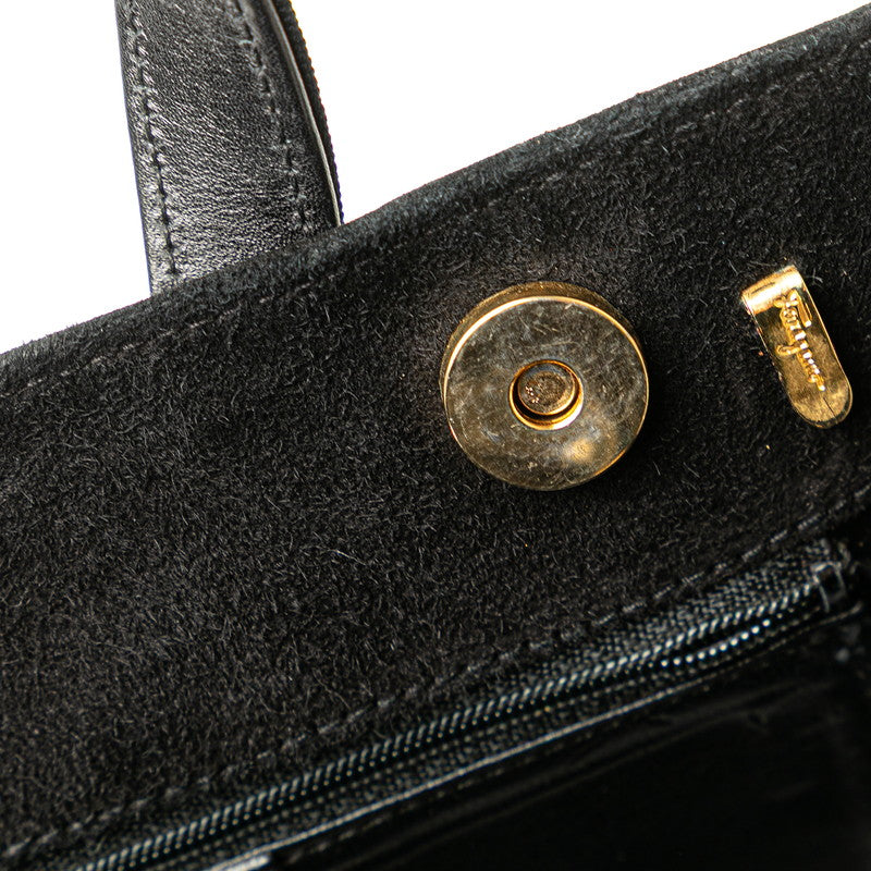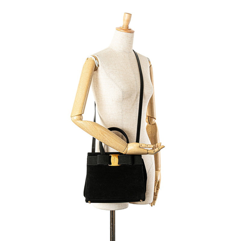 サルヴァトーレフェラガモ ヴァラリボン ハンドバッグ ショルダーバッグ 2WAY BA21 4178 ブラック スウェード レディース Salvatore Ferragamo 【中古】