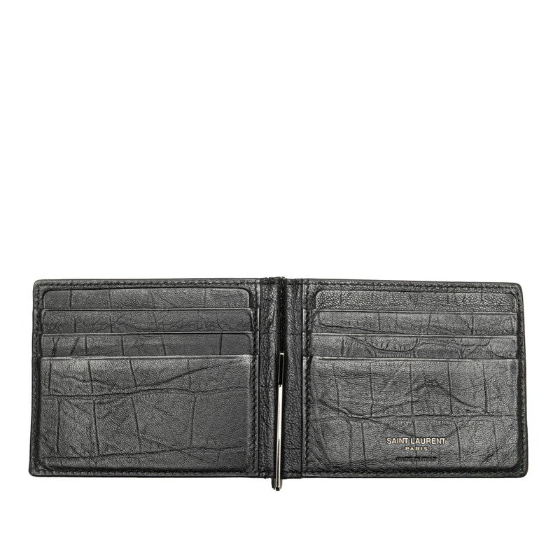 サンローラン カサンドラ カードケース マネークリップ 485630 ブラック レザー メンズ SAINT LAURENT 【中古】