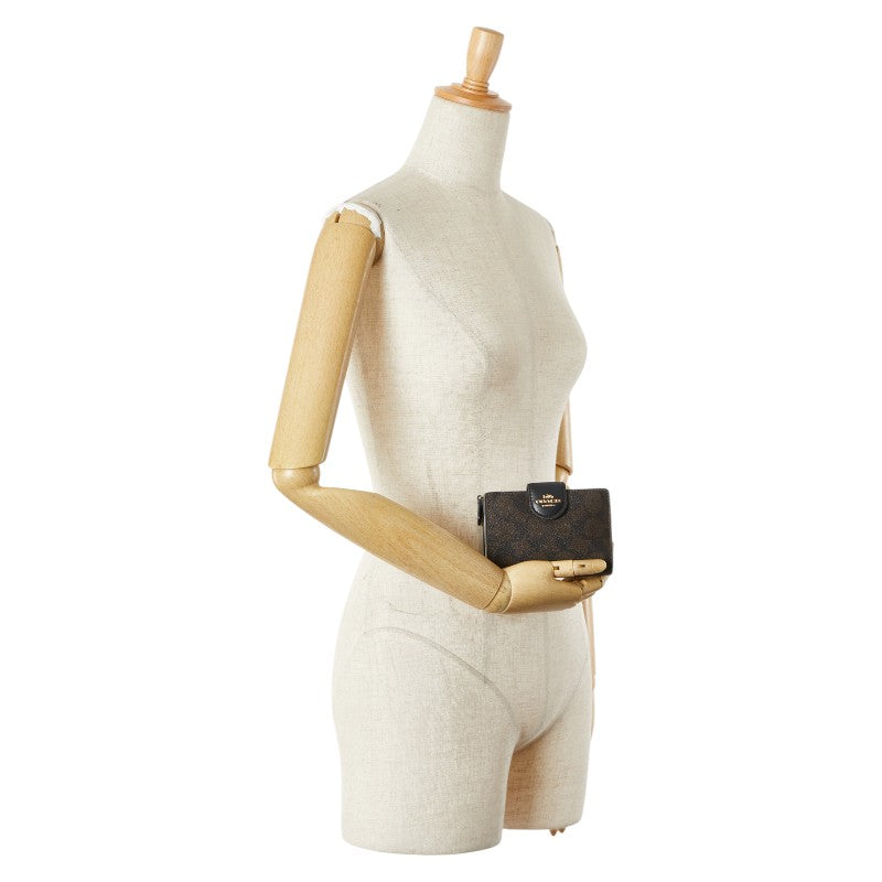 コーチ シグネチャー 二つ折り財布 C0082 ブラウン ブラック PVC レザー レディース COACH 【中古】