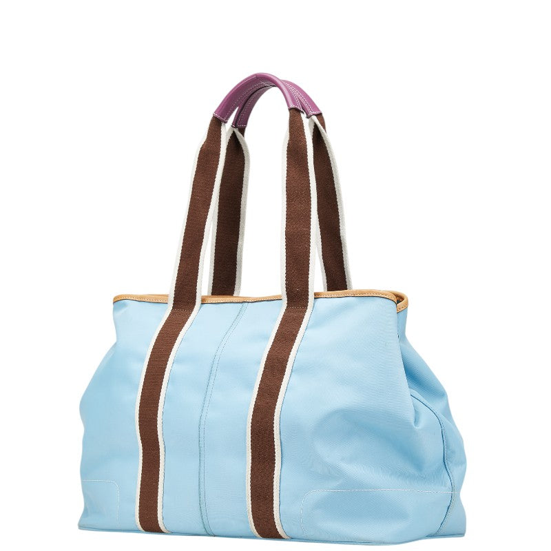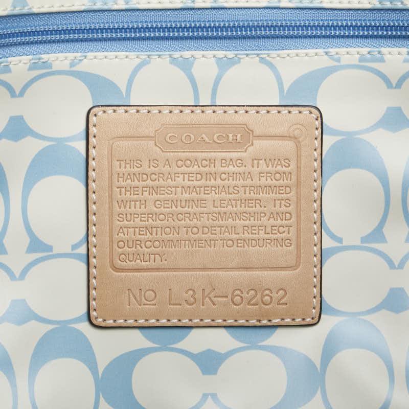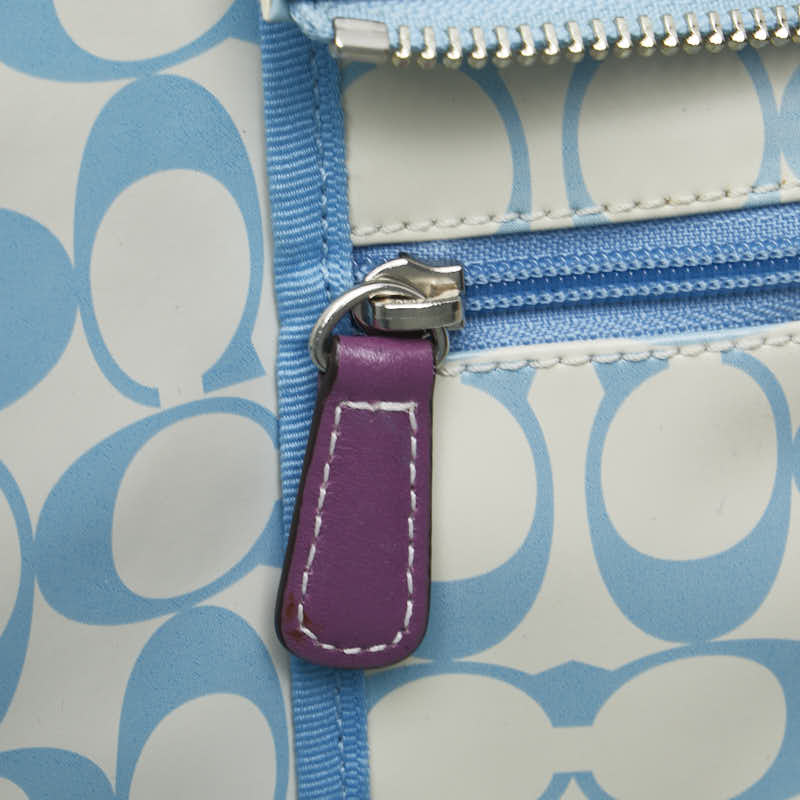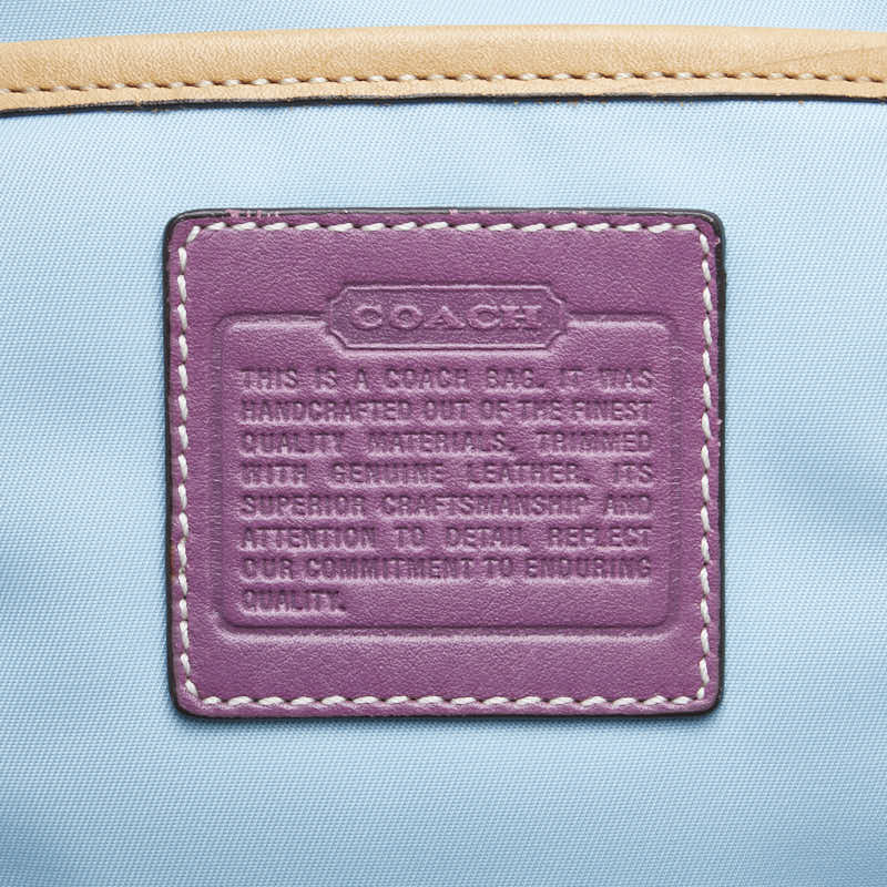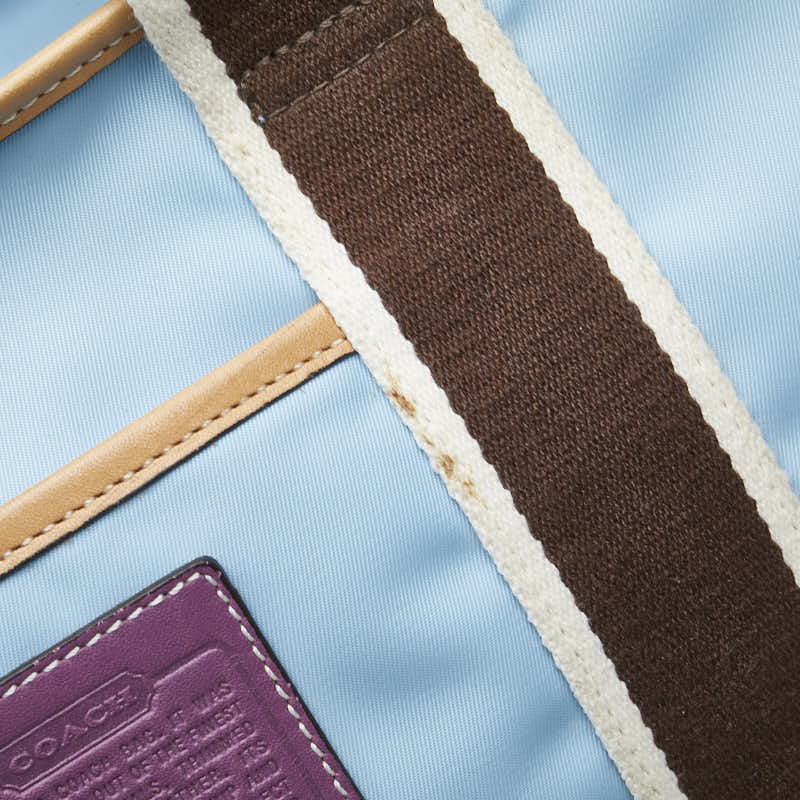 コーチ ハンプトンズ ウイークエンド トートバッグ ショルダーバッグ ライトブルー ブラウン ナイロン レザー レディース COACH 【中古】