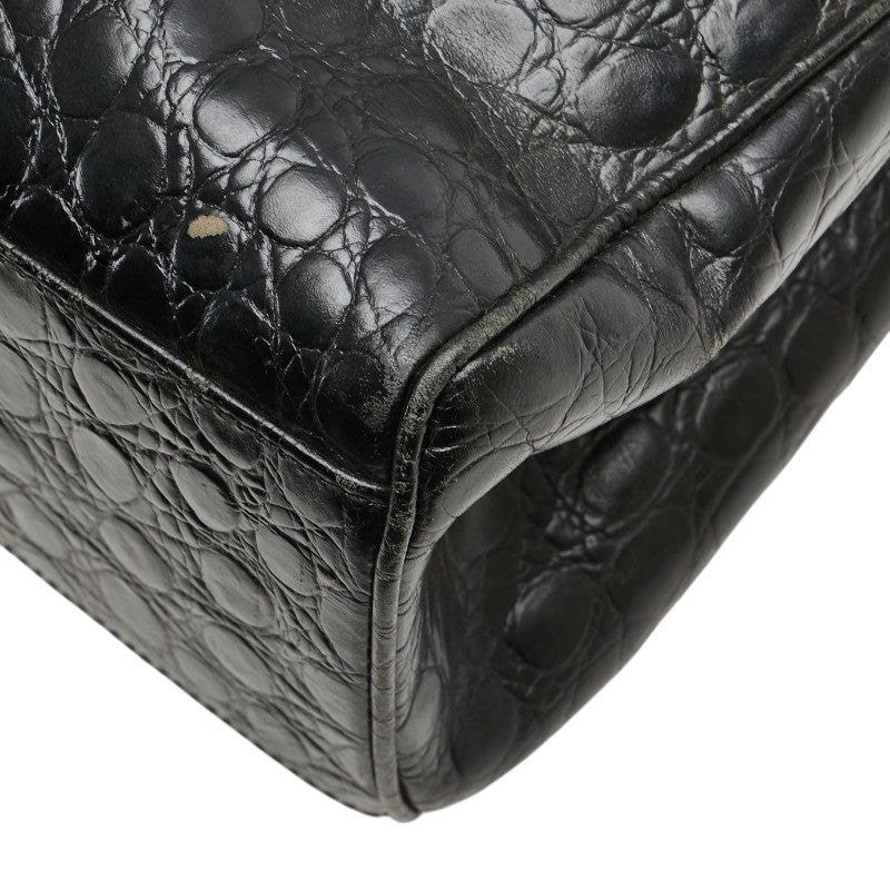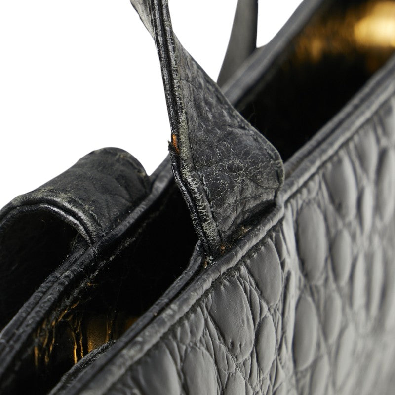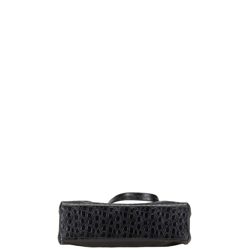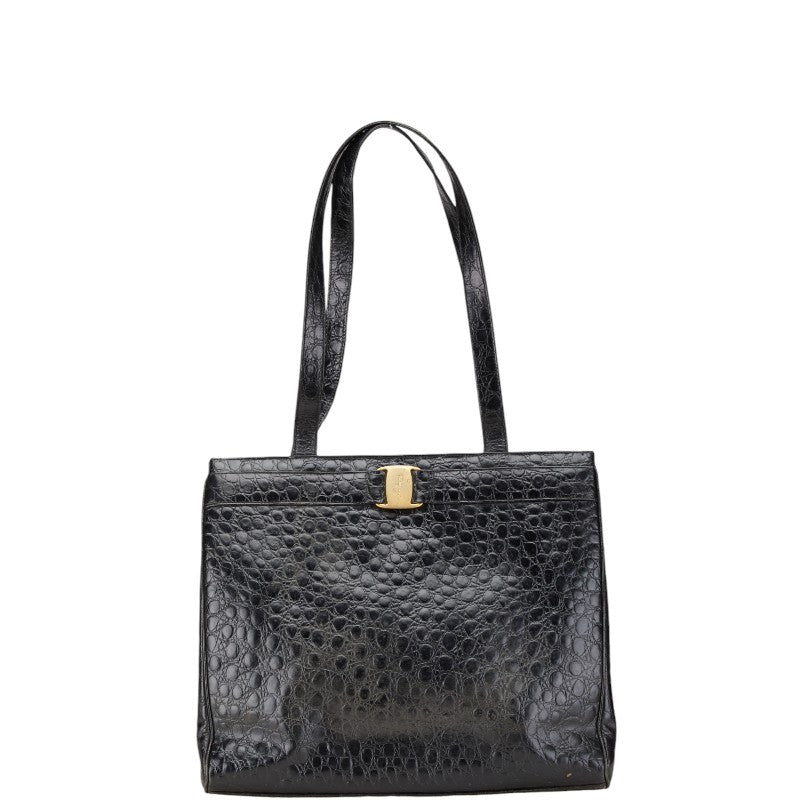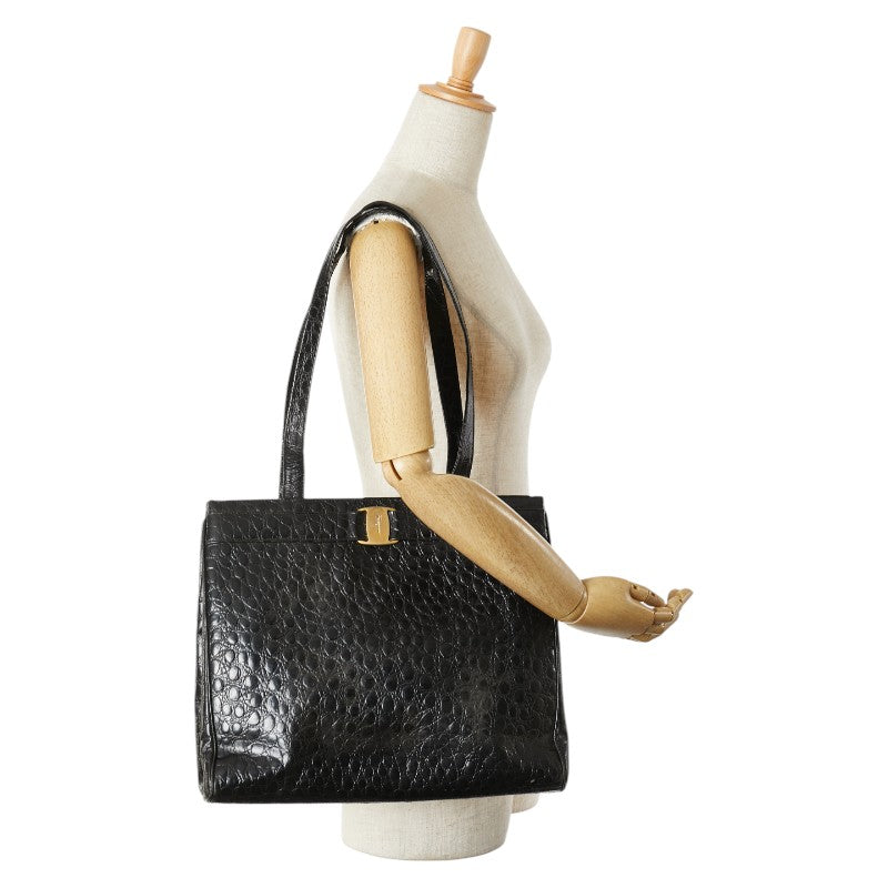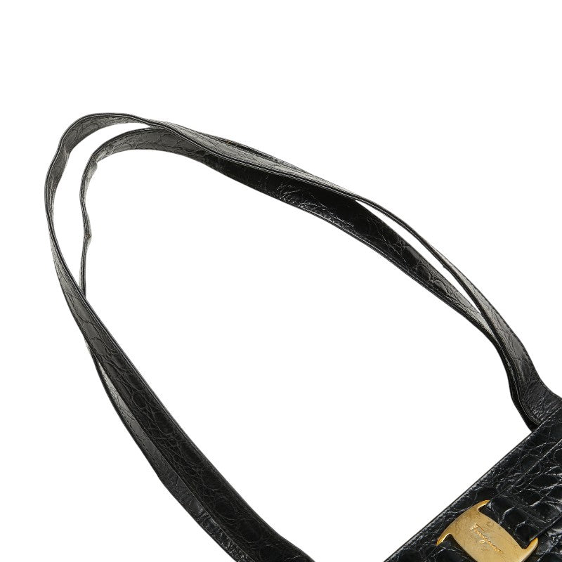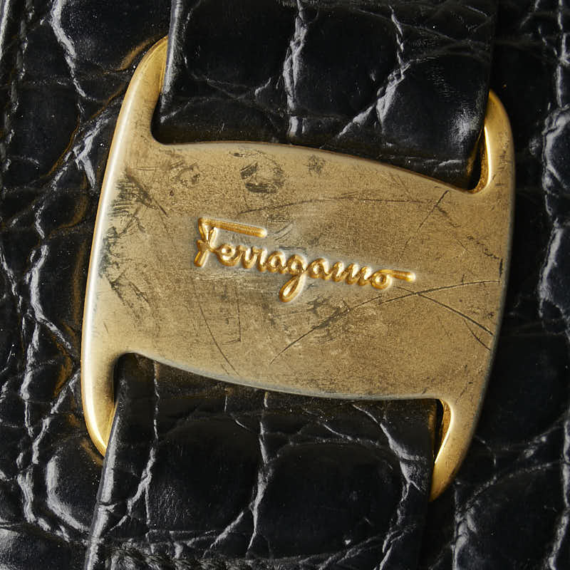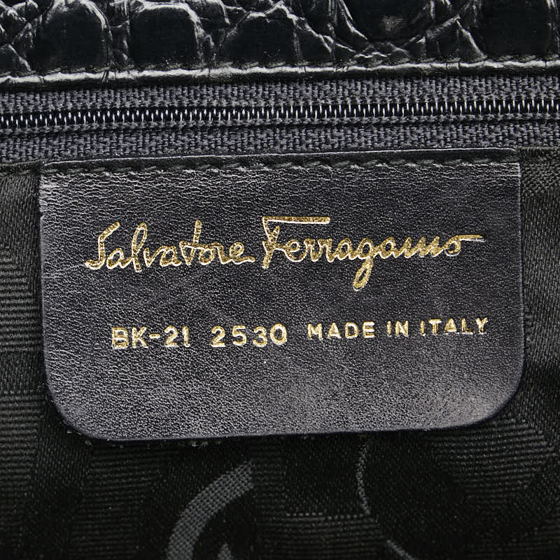 サルヴァトーレフェラガモ ヴァラ クロコ型押し ハンドバッグ トートバッグ BK-21 2530 ブラック レザー レディース Salvatore Ferragamo 【中古】