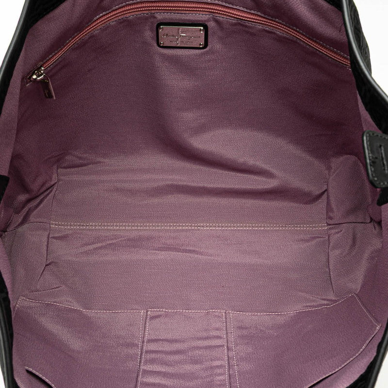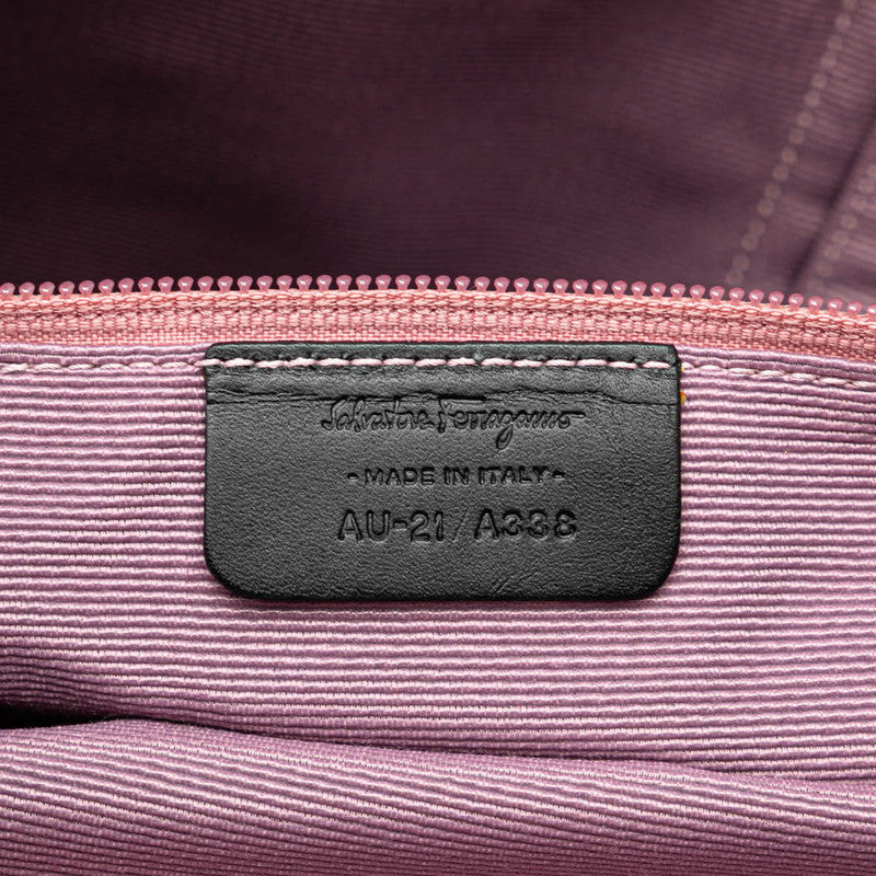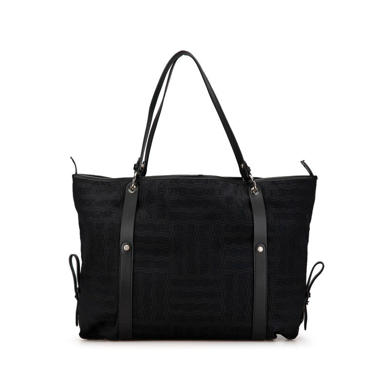 サルヴァトーレフェラガモ ロゴ トートバッグ ブラック キャンバス レザー レディース Salvatore Ferragamo 【中古】