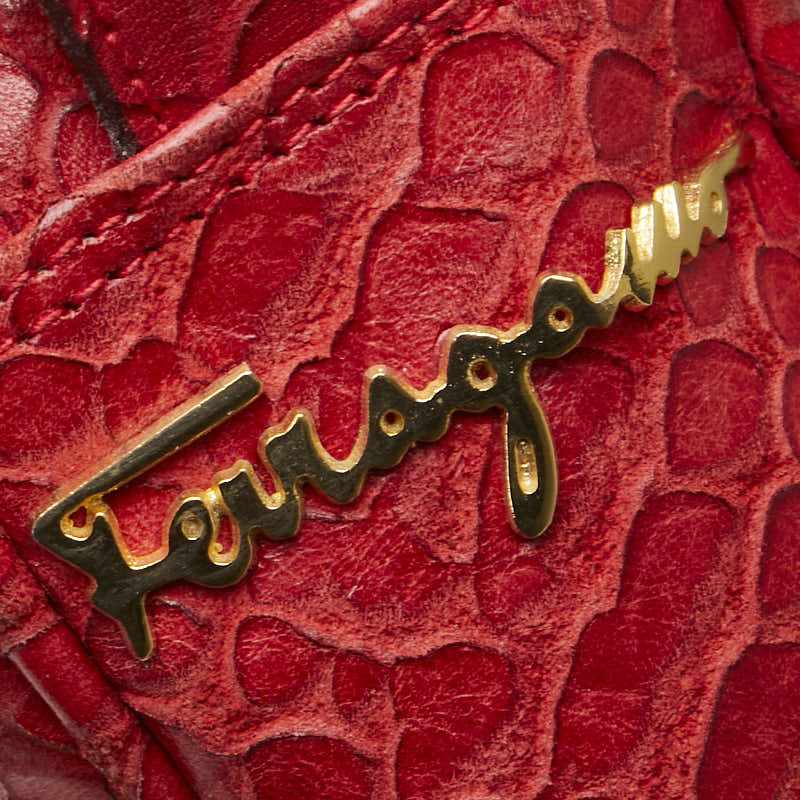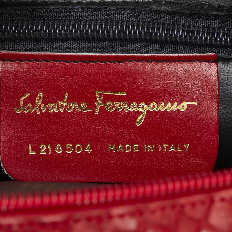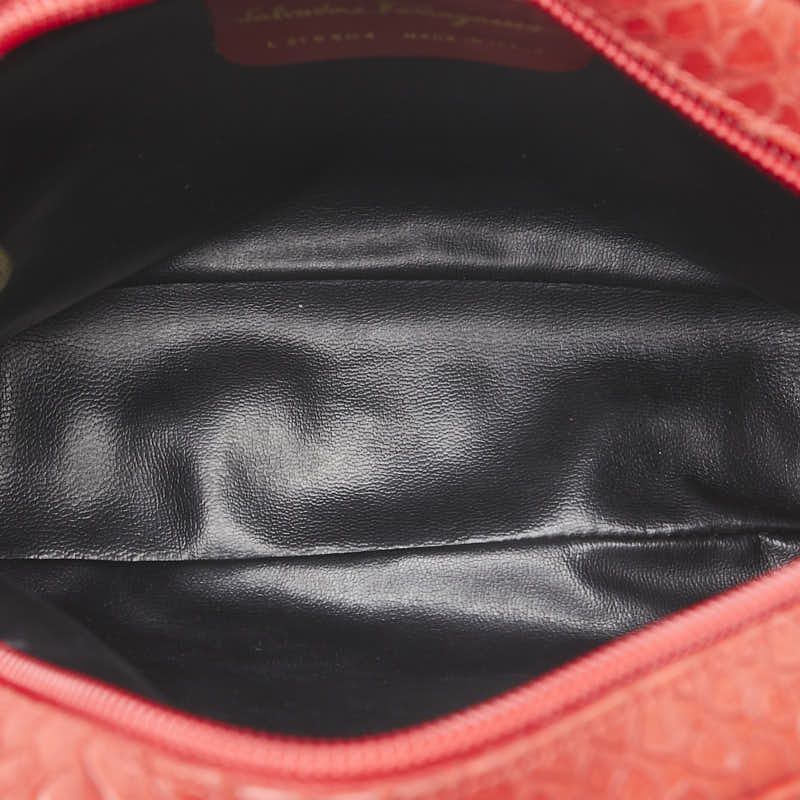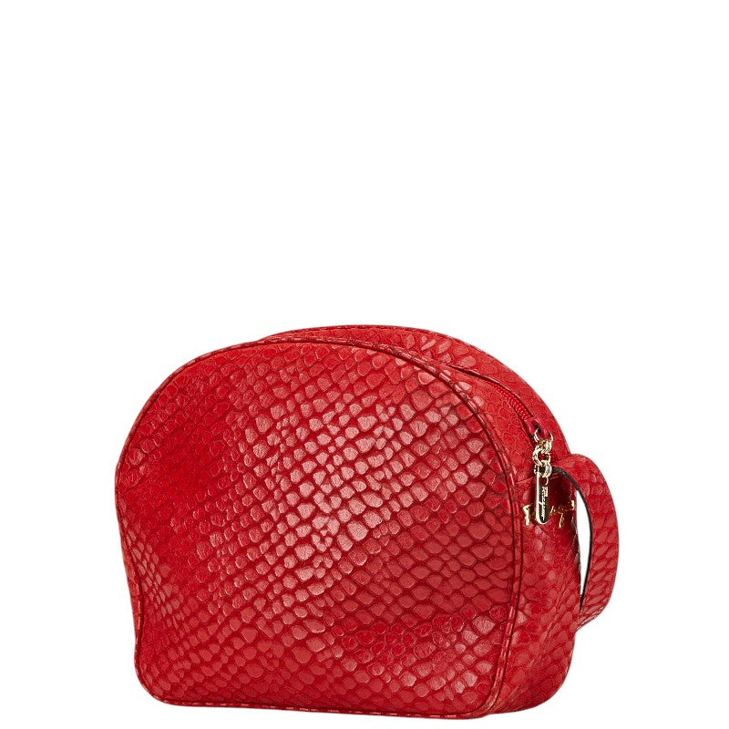 サルヴァトーレフェラガモ 型押し 斜め掛け ショルダーバッグ レッド レザー レディース Salvatore Ferragamo 【中古】