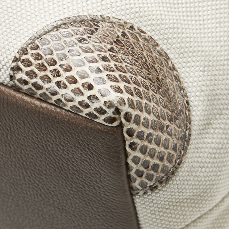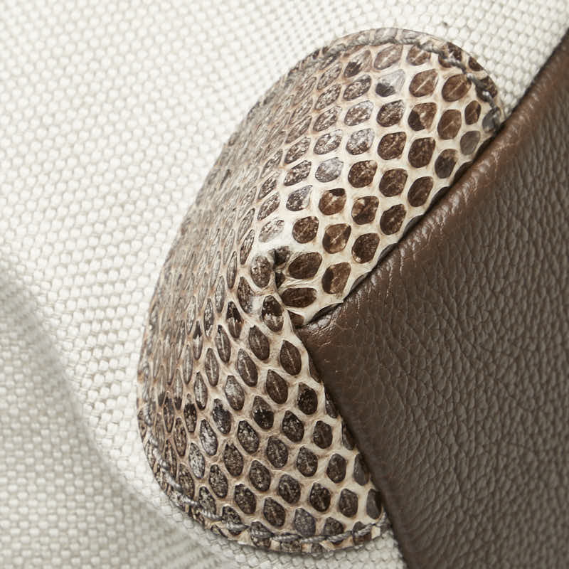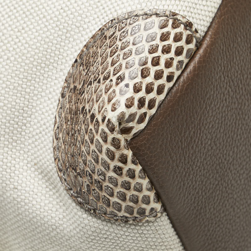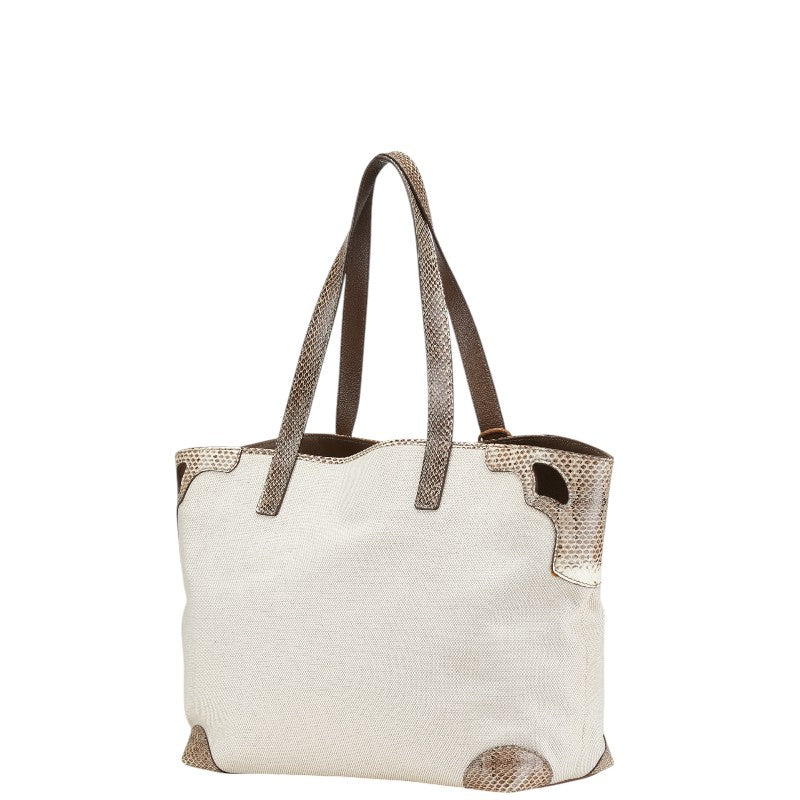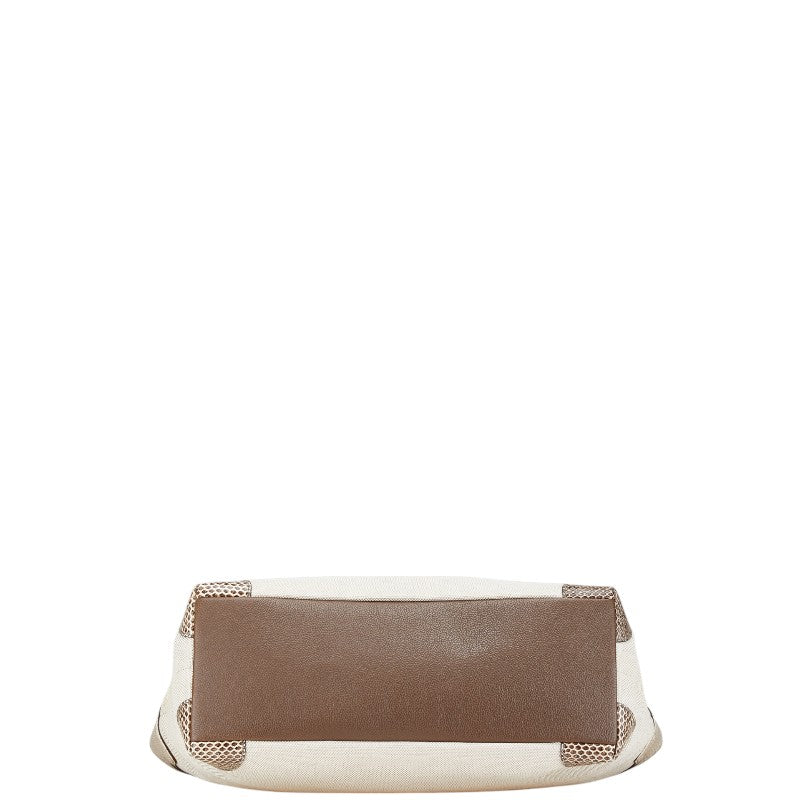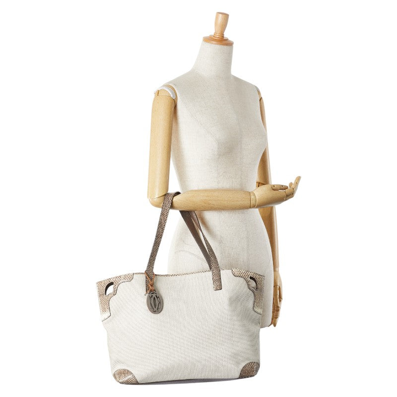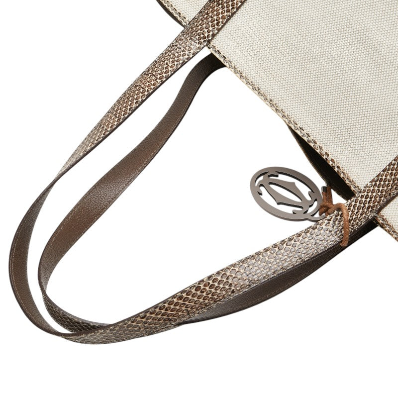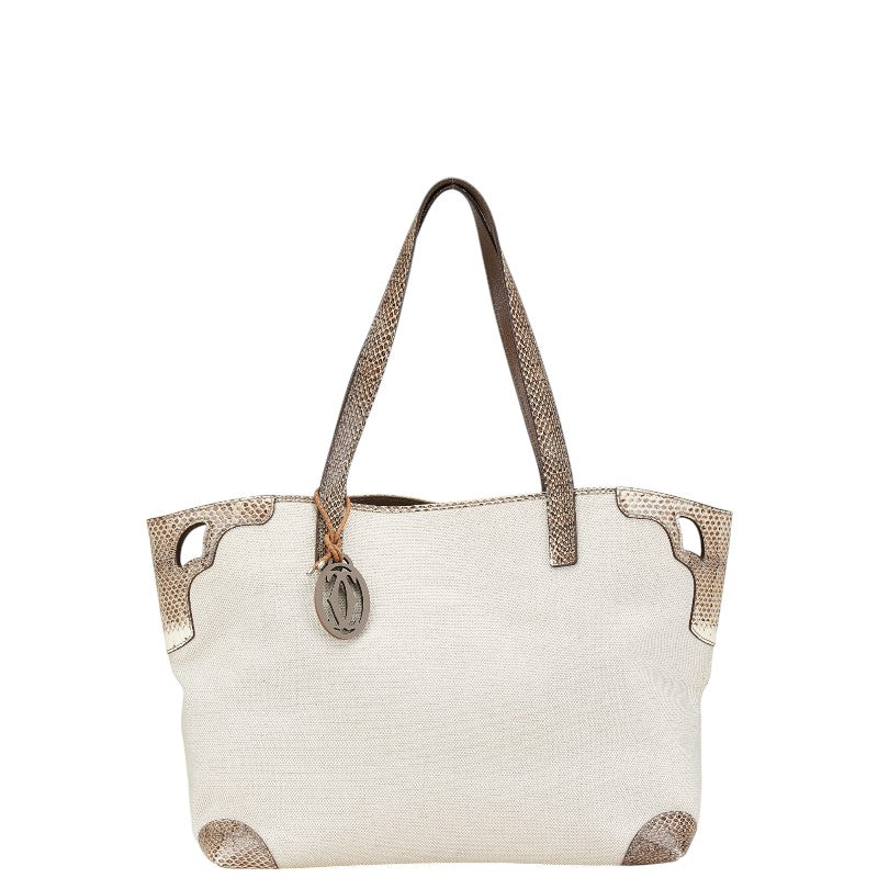 カルティエ マルチェロ トートバッグ ハンドバッグ ホワイト ベージュ キャンバス パイソン レディース CARTIER 【中古】